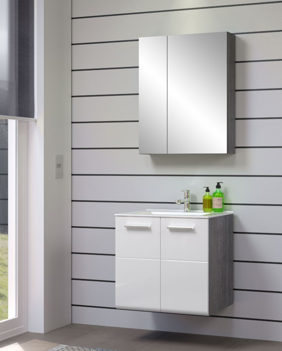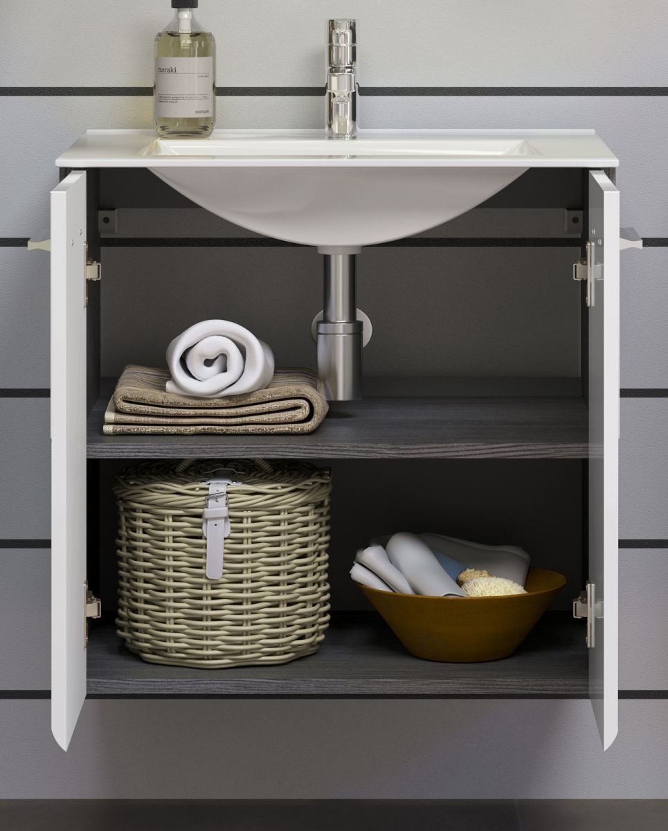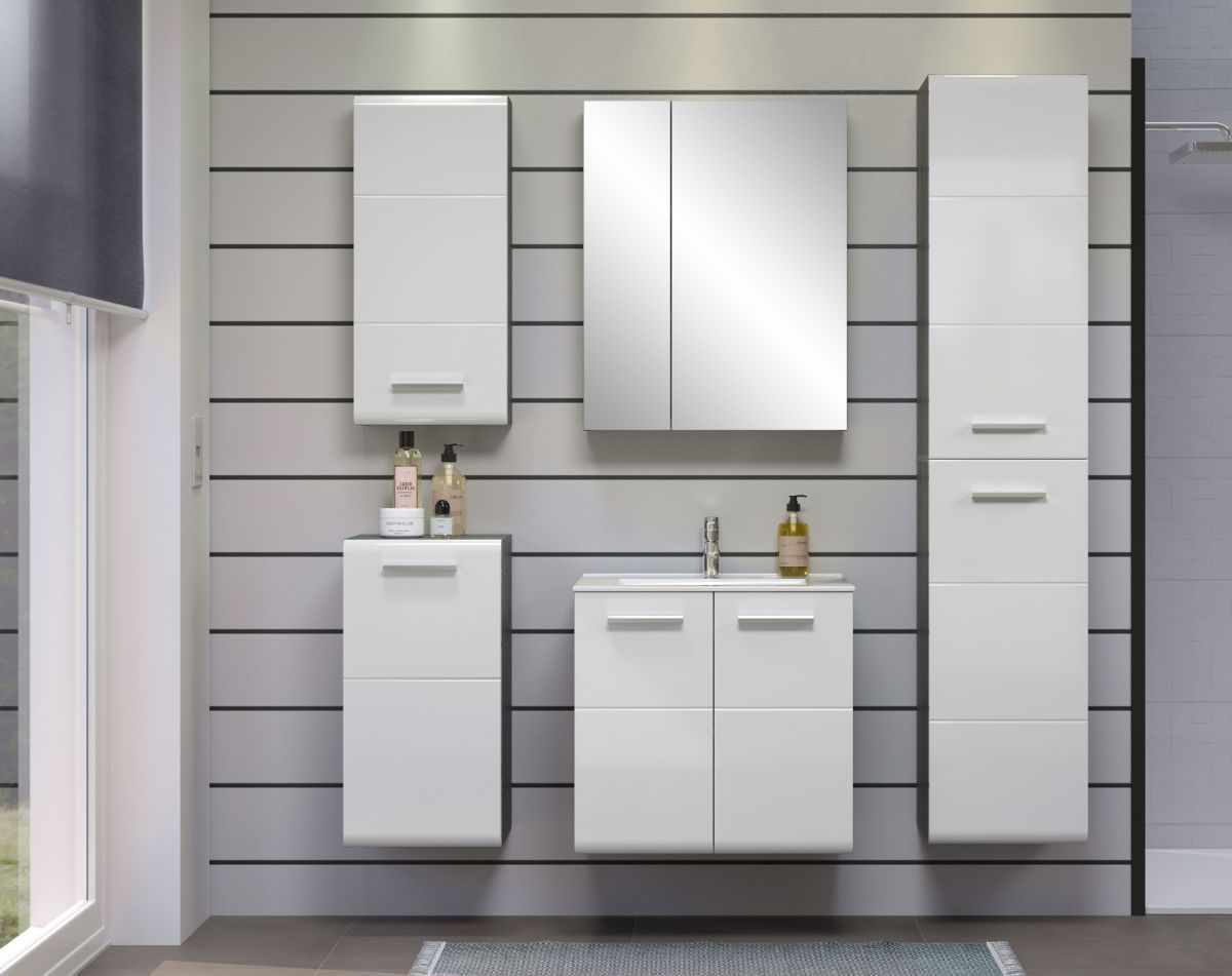 trendteam Waschtisch Set Waschbeckenunterschrank mit Waschbecken weiß Hochglanz 60 cm Riva