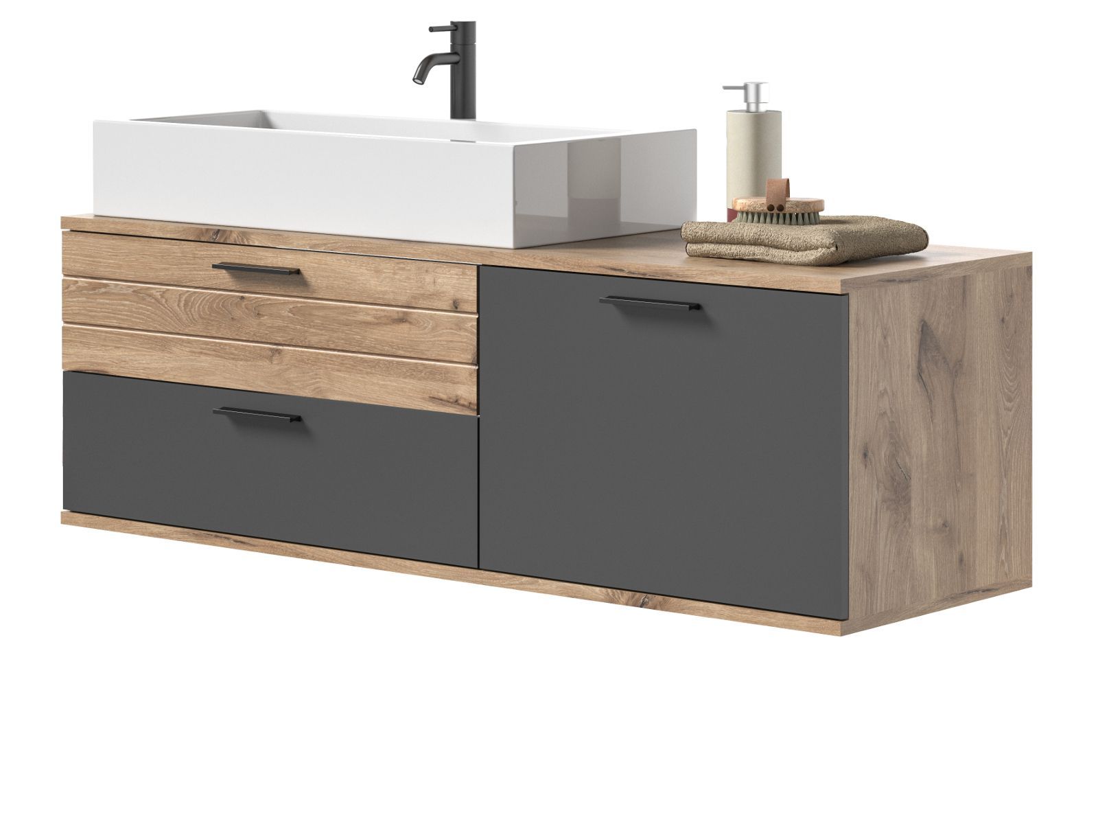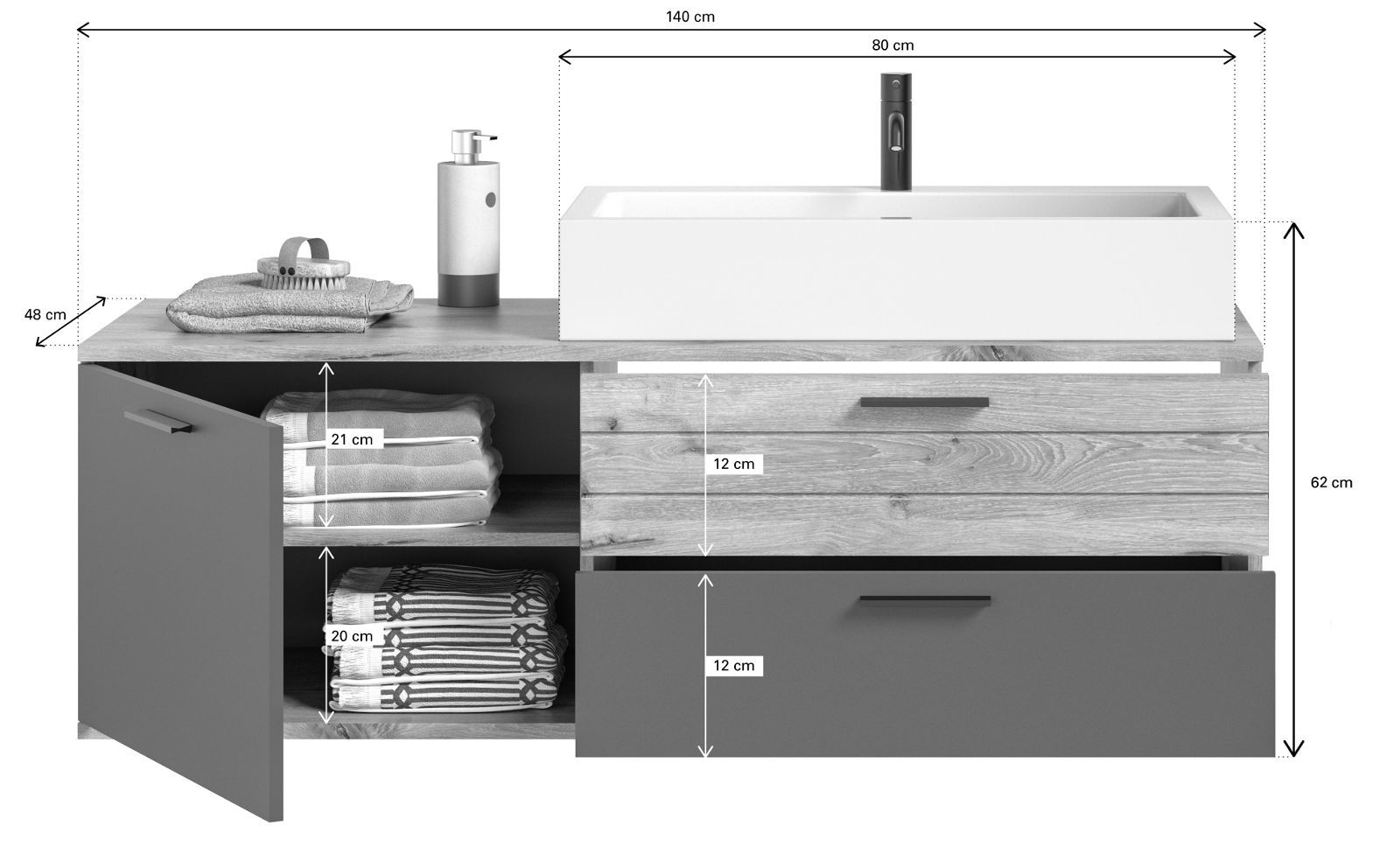 Waschtisch Set Waschplatz mit Waschbecken Hängeschrank Eiche grau 140 cm Tomaso