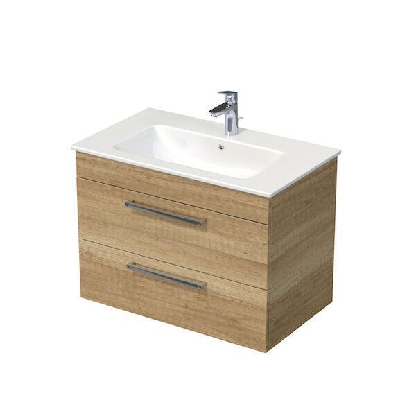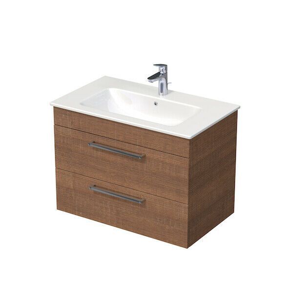 Waschtisch-Unterschrank ME by Starck 83 cm, mit Griff, in Lack u. Holzoptik