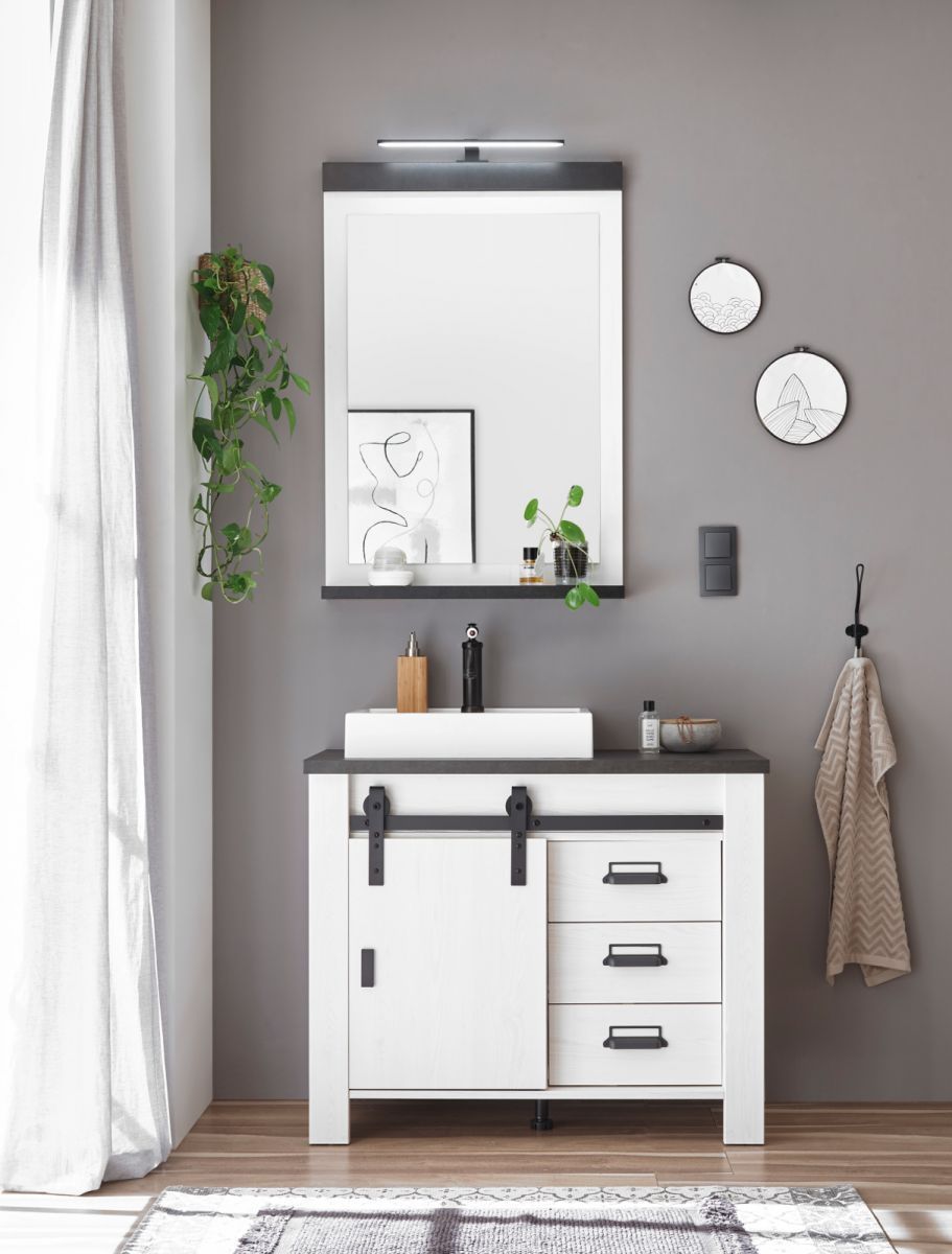Waschtisch Waschbeckenunterschrank Set komplett MIT Waschbecken weiß Pinie Stove