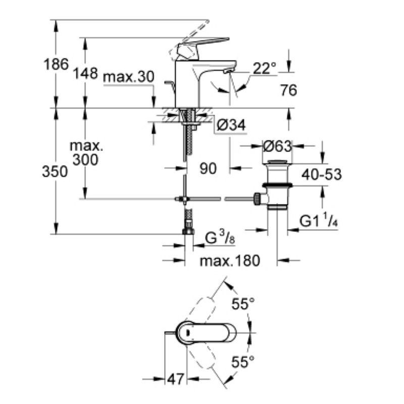 Waschtischarmatur GROHE Eurosmart Cosmopolitan 32825000 inkl. Ablaufgarnitur