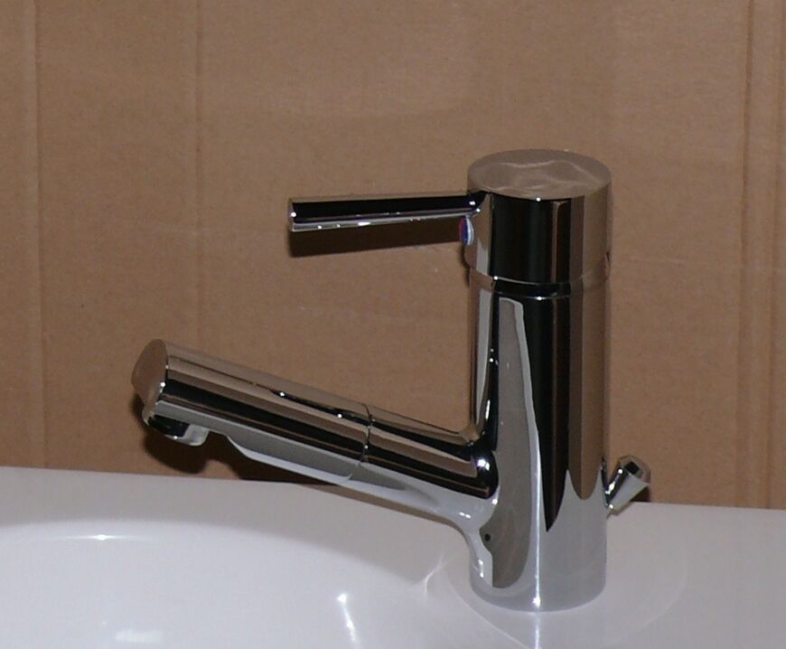 • Waschtisch, Bad, Wasserhahn, Armatur, rot + Excenter rot
