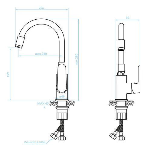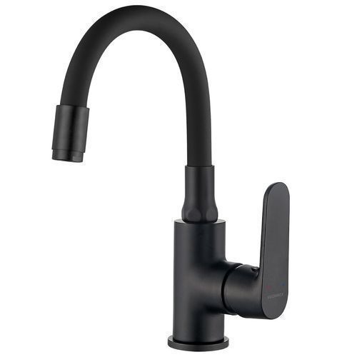 Waschtischarmatur Wasserhahn Hoch DIMA Mischbatterie in Schwarz mit flexiblen Auslauf