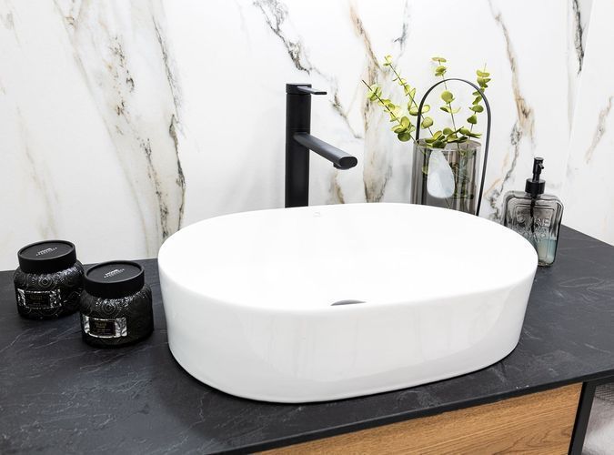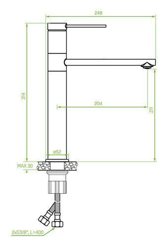 Waschtischarmatur Wasserhahn Hoch PINAR Mischbatterie in Schwarz + Click-Clack