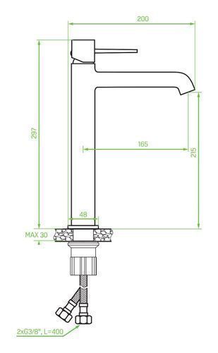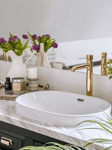 Waschtischarmatur Wasserhahn Hoch POLA Mischbatterie in Gold + Click-Clack