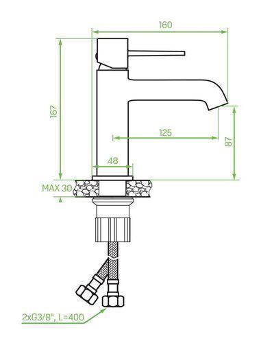 Waschtischarmatur Wasserhahn Kleine POLA Mischbatterie in Schwarz + Click-Clack