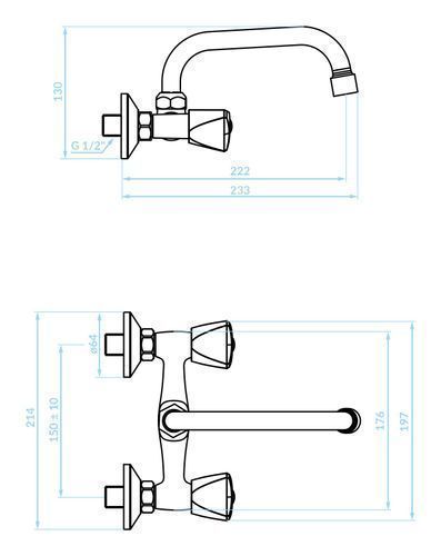 Waschtischarmatur Wasserhahn Wand NORM Mischbatterie für Badezimmer in Chrom