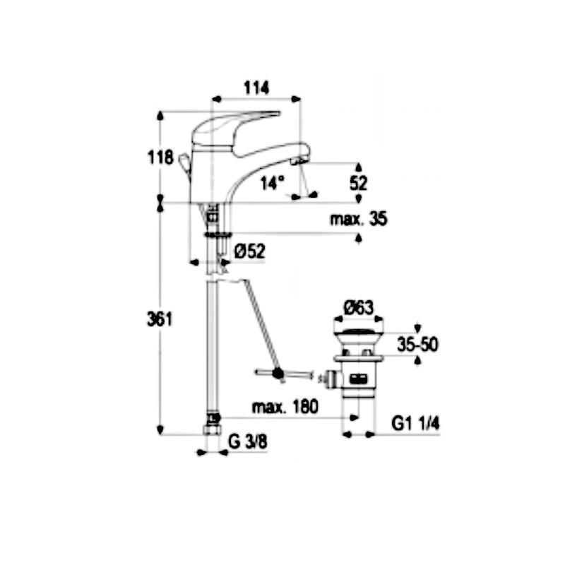Waschtischarmatur XENA - Heinrich Schulte, hochdruck, chrom, inkl. Excentergarnitur
