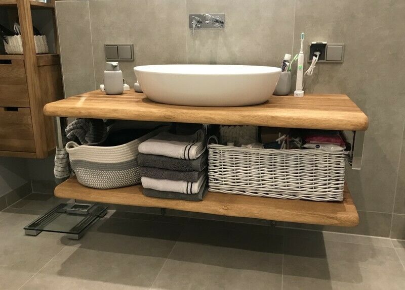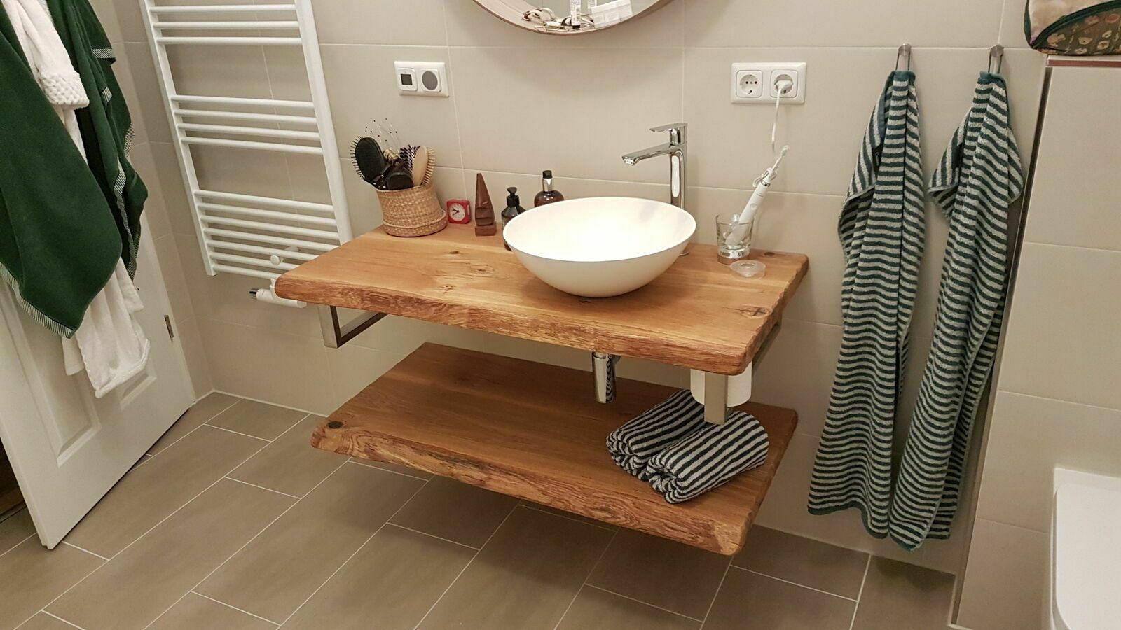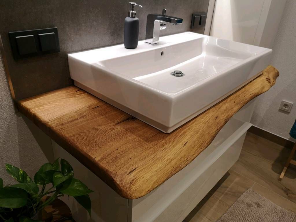 Waschtischplatte Waschtisch Badezimmer Holzplatte Eiche massiv, geölt, Baumkante