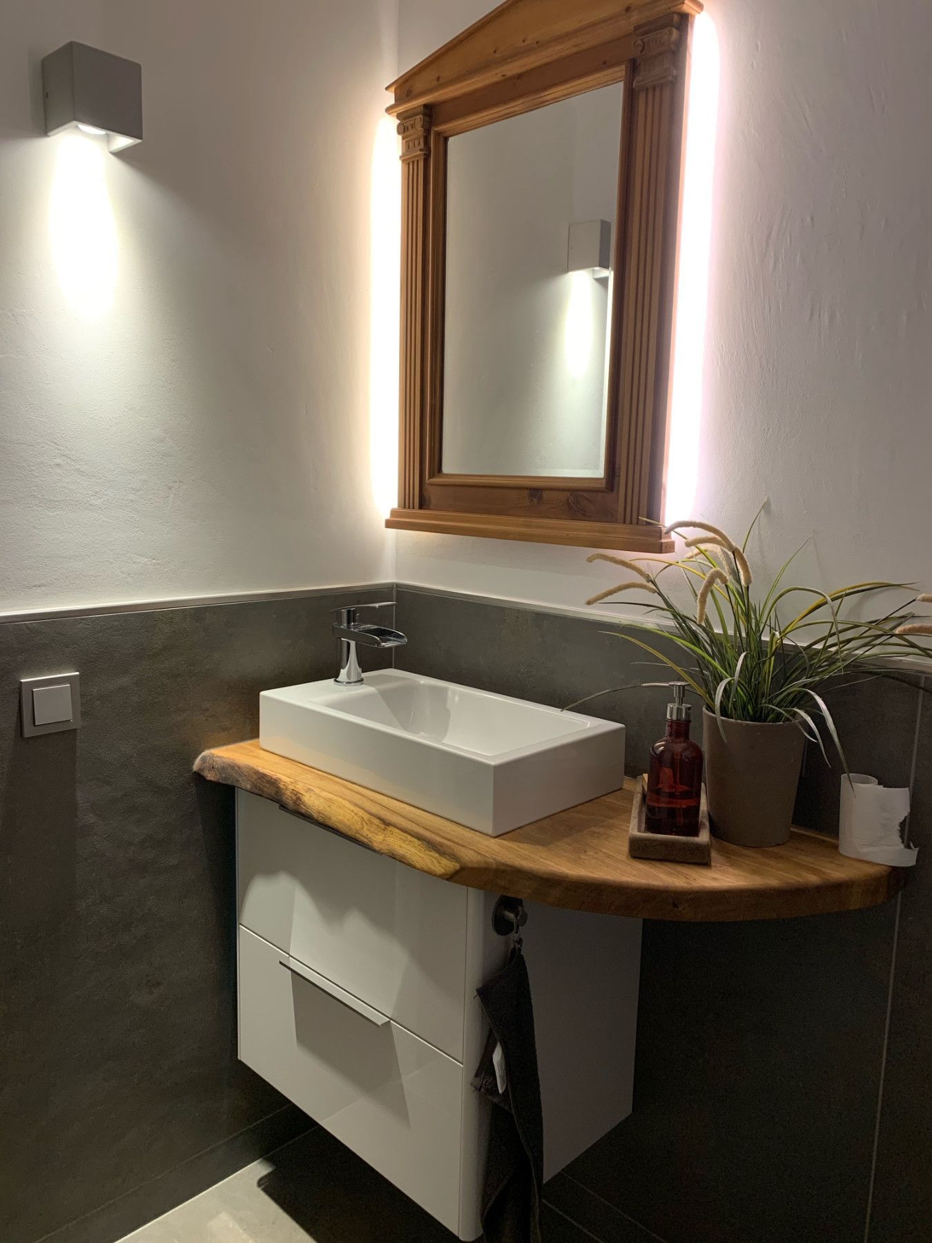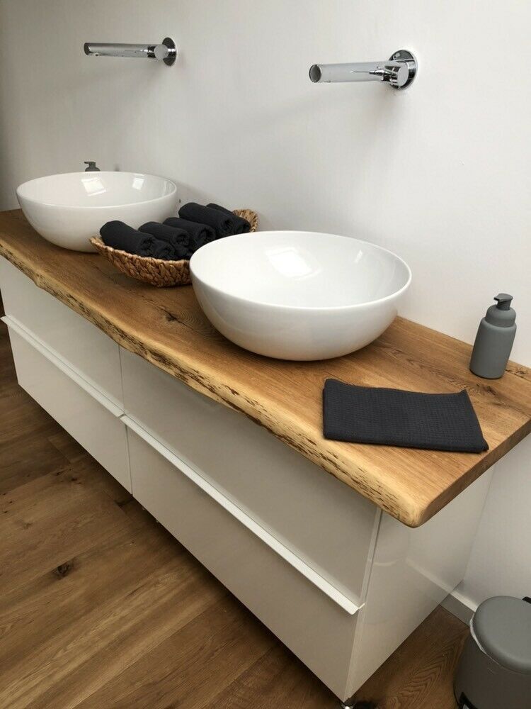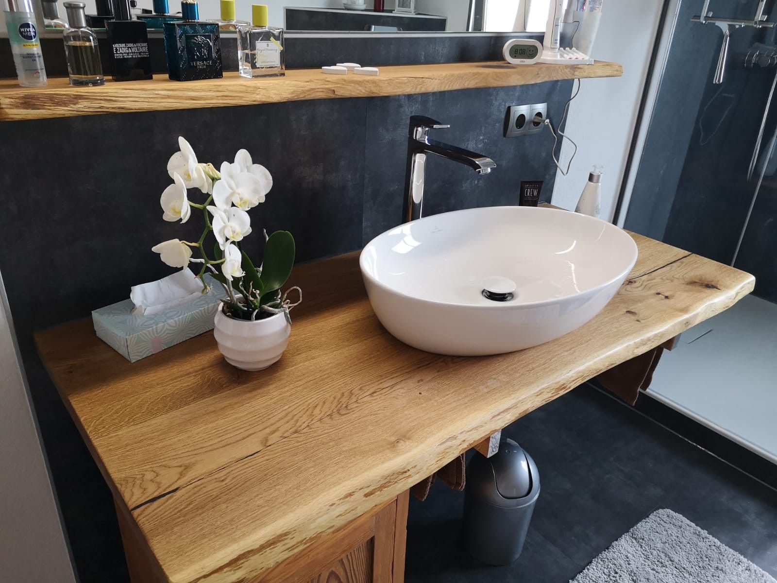 Waschtischplatte Waschtisch Eiche Baumkante rustikal massiv Massivholzplatte