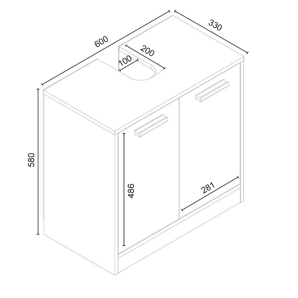 Waschtischunterschrank "Elsa", weiß, länzend, 2-türig 60x33x58cm