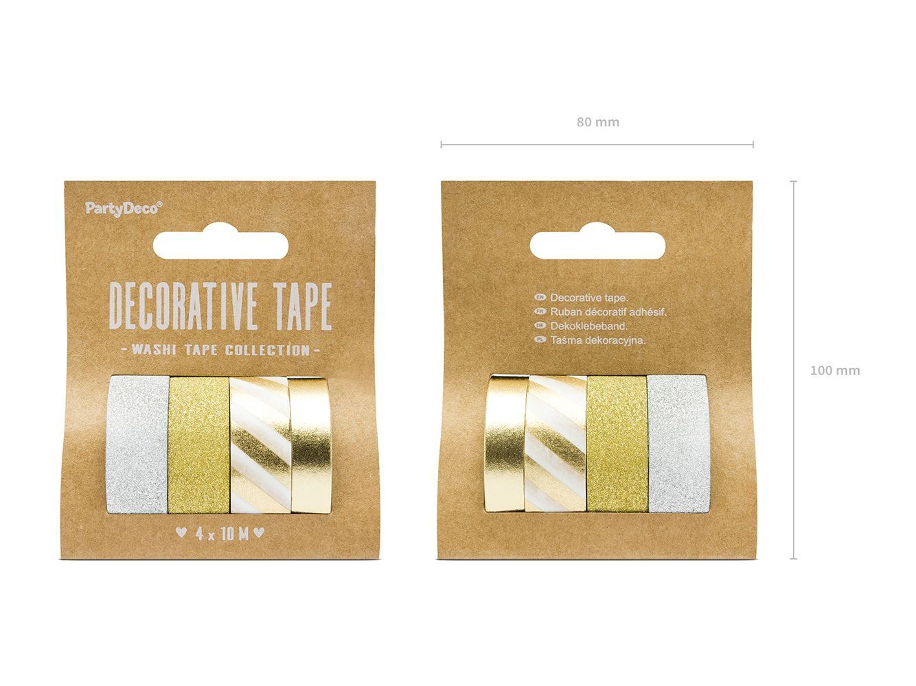 Washi Tape 10-15mm x 10m mit Glitzer 4er Set gold silber