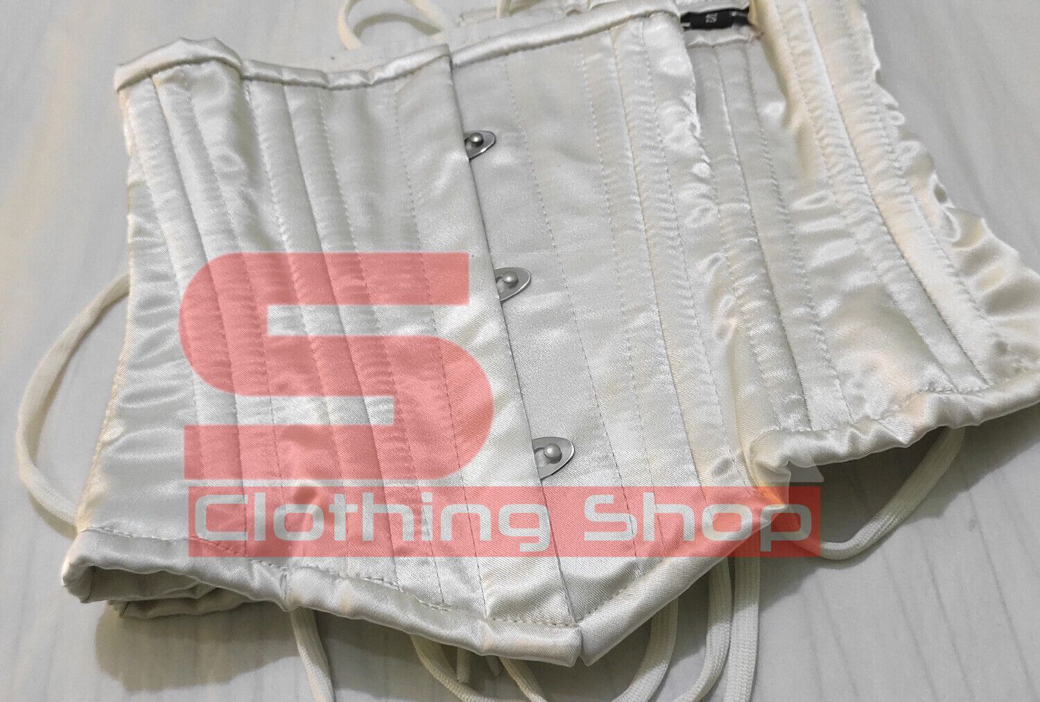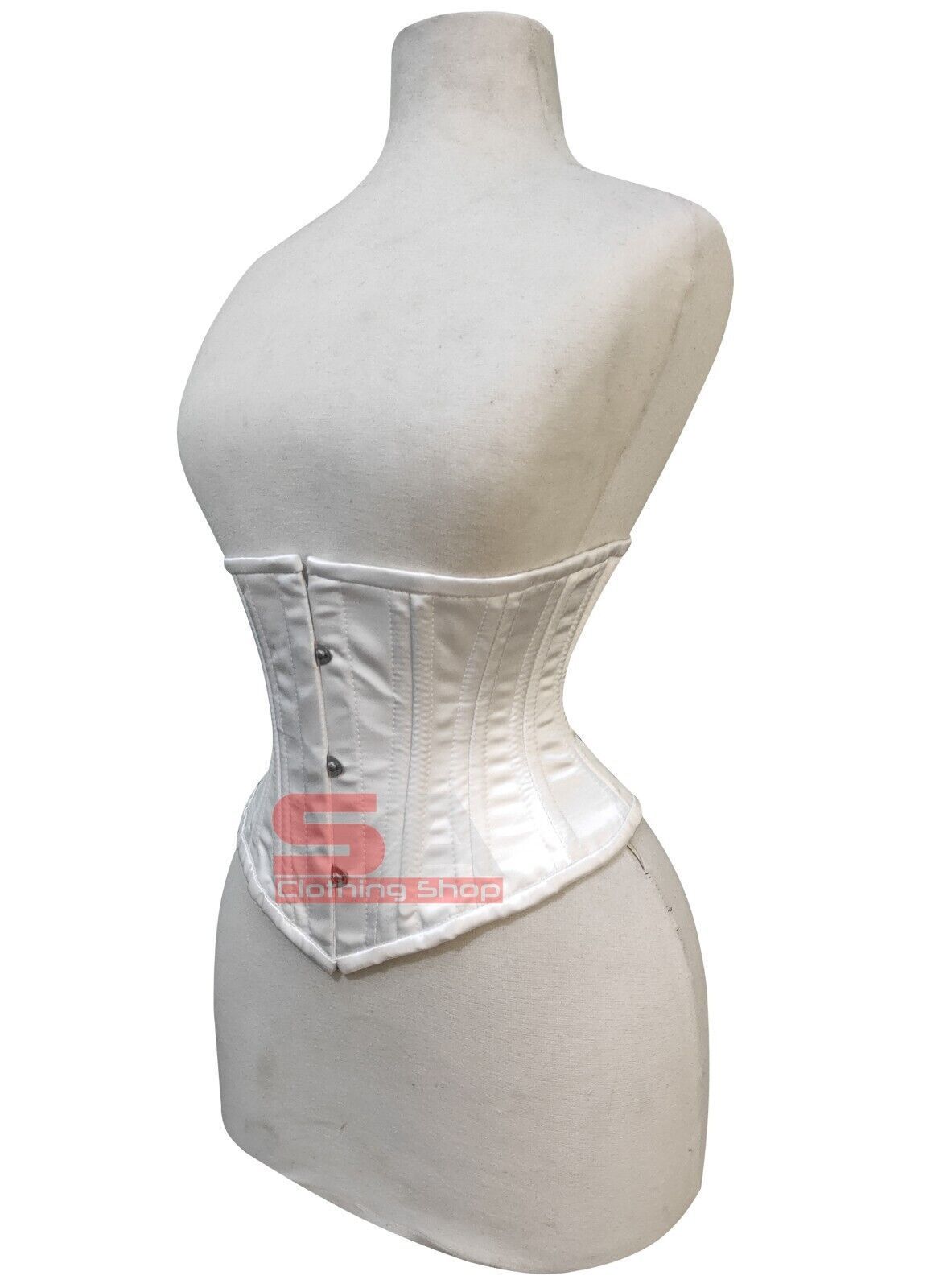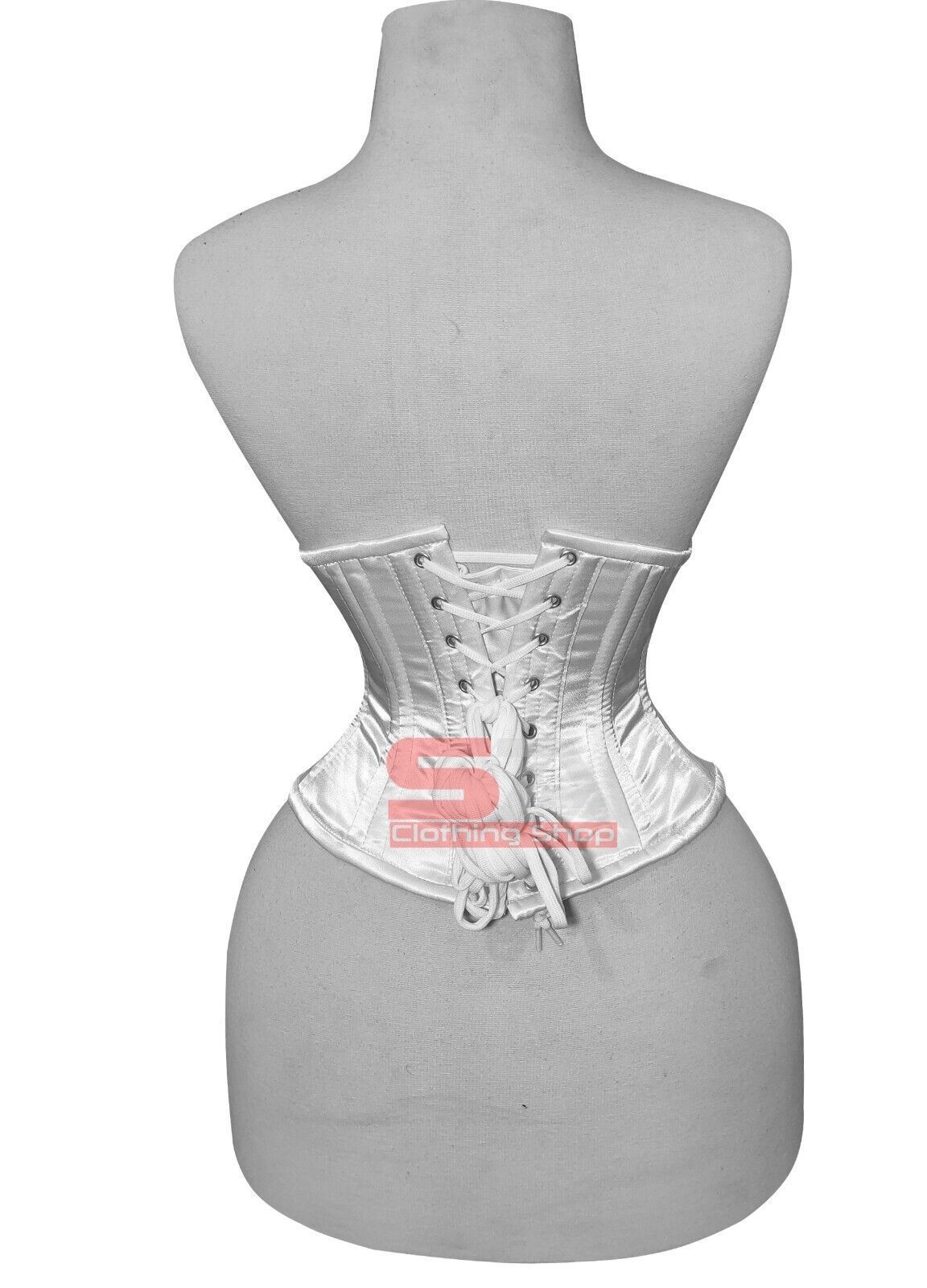 Description Corset Detail Outer Shell: 100% Polyester Satin Inner Shell: 100% Cotton Twill Underwired: 100% steel bones Closure: Rust free metal claps Corset Front Length: 10.5 Corset Side Length: 9 Corset Back Length: 10 5 Modesty Panel at the back Corset features Heavy Duty, Very Strong Fully Stee