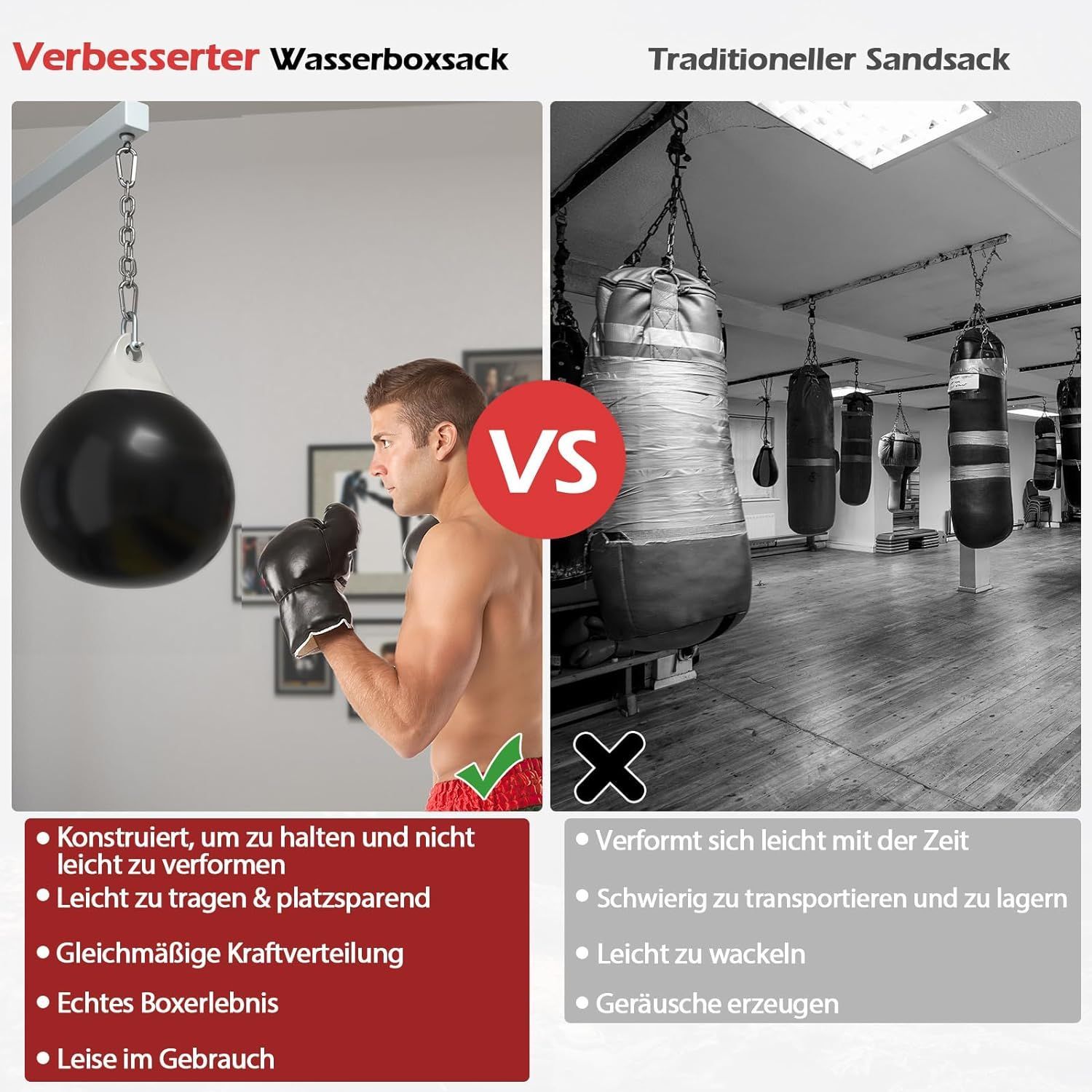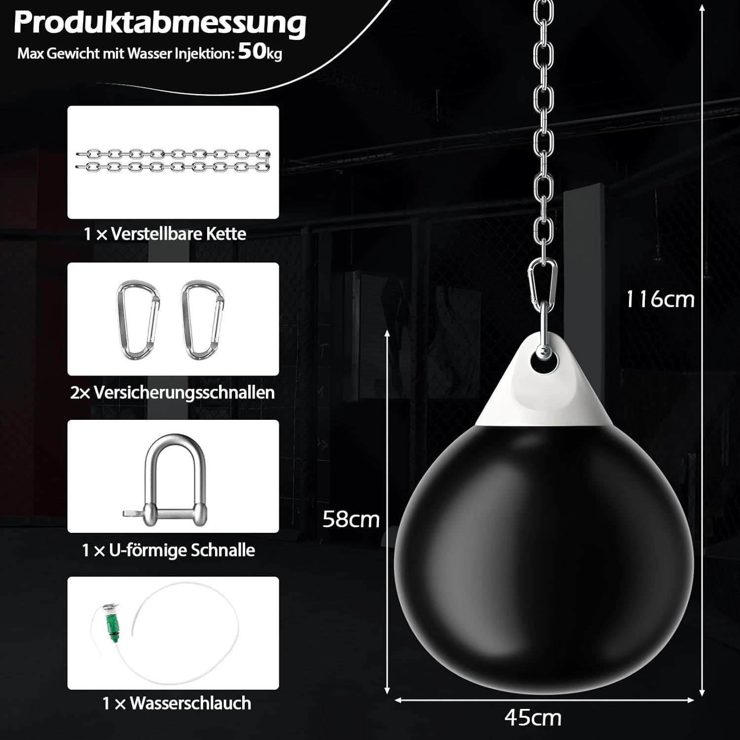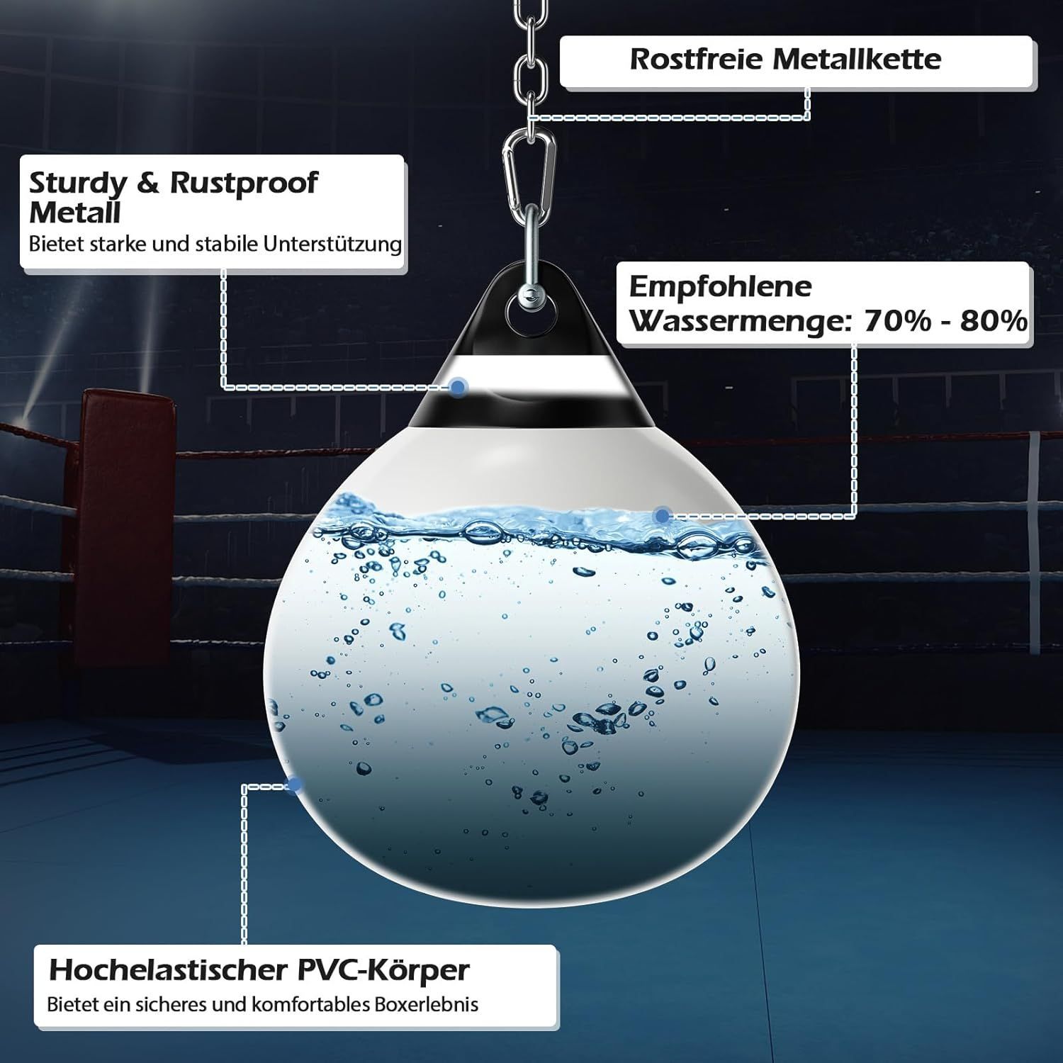 Wasserboxsack, 50 kg Boxing Punching Bag mit Verstellbarer Metallkette, Punchingsack