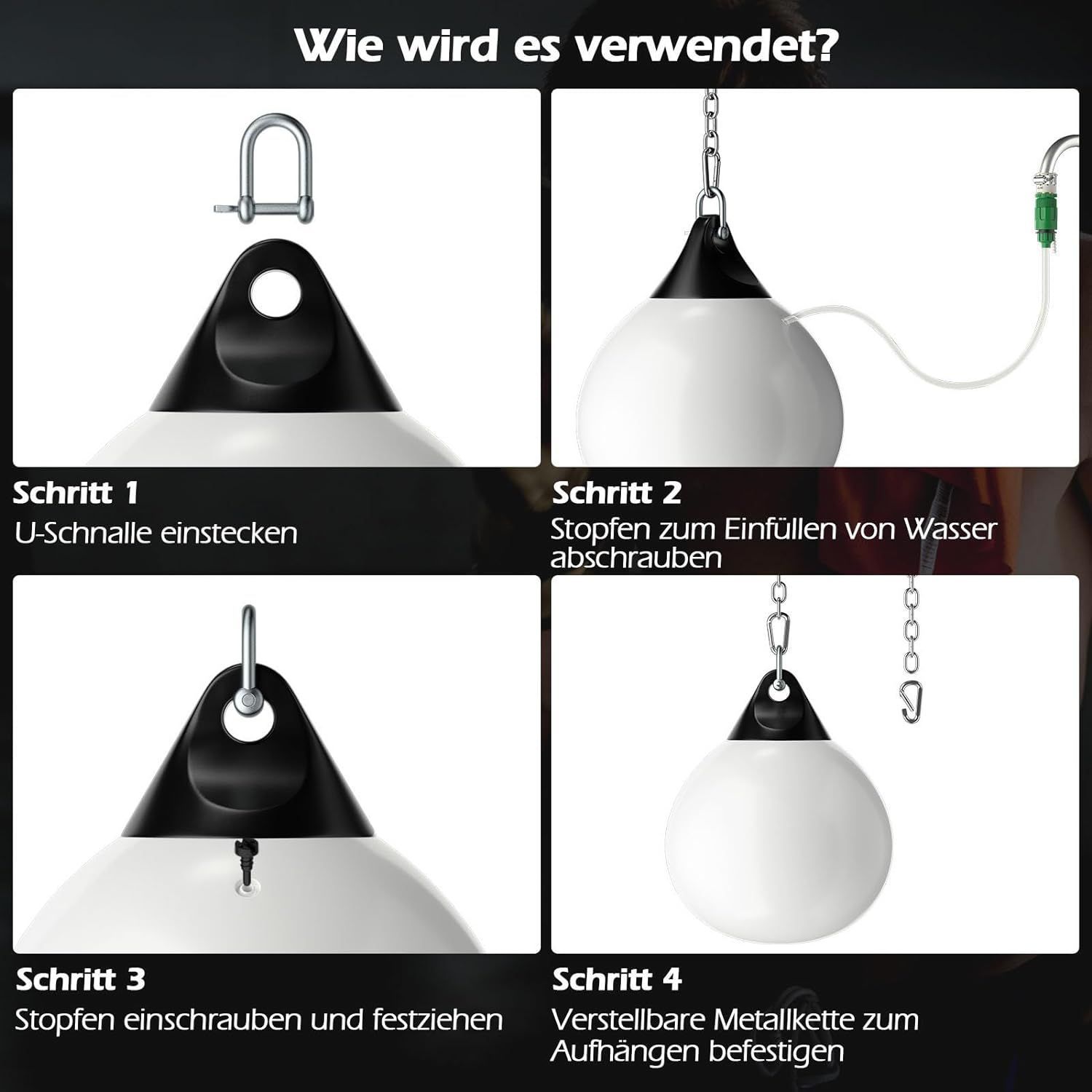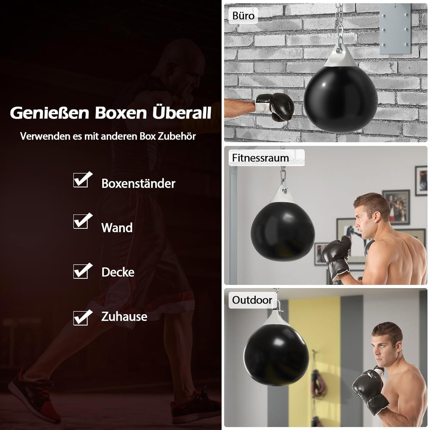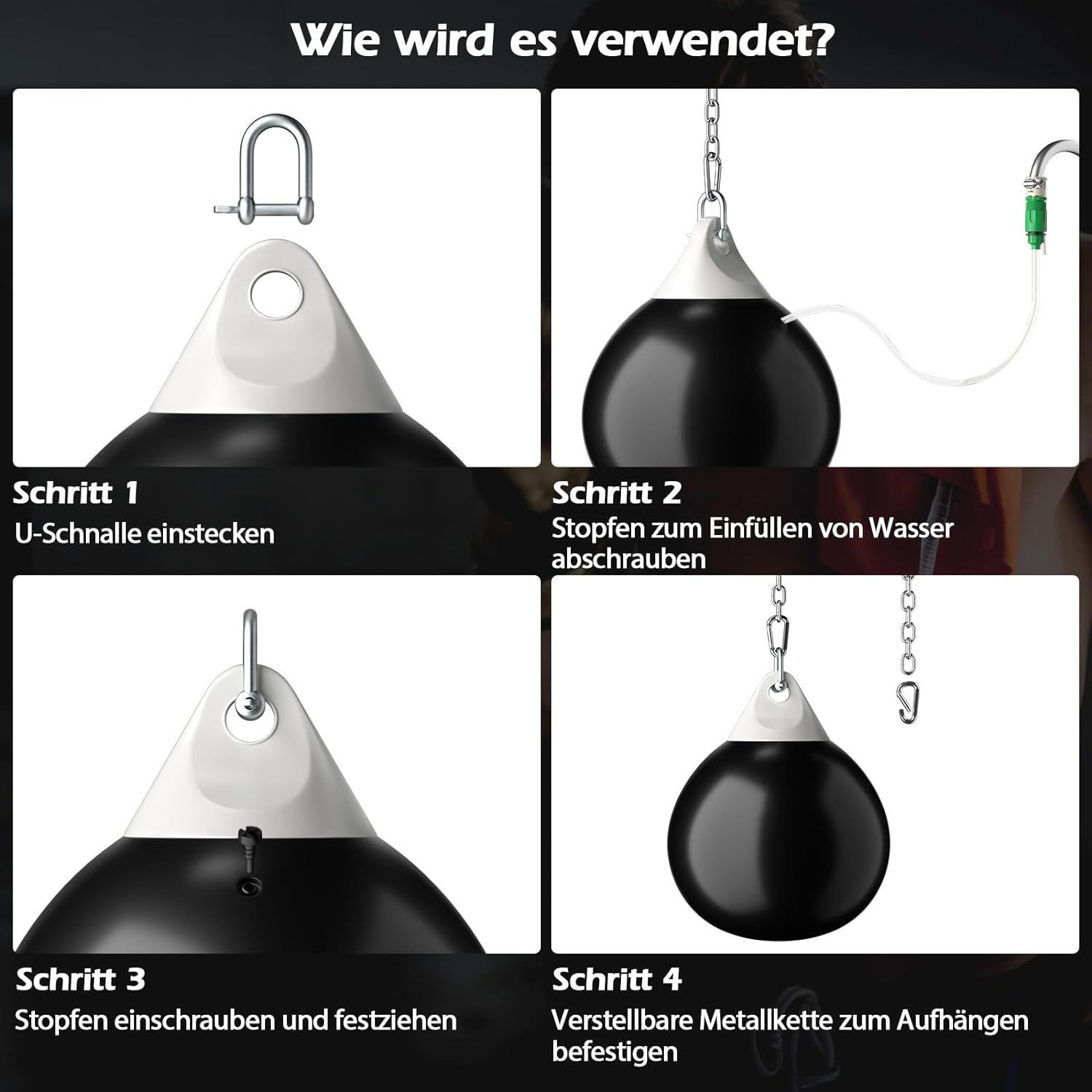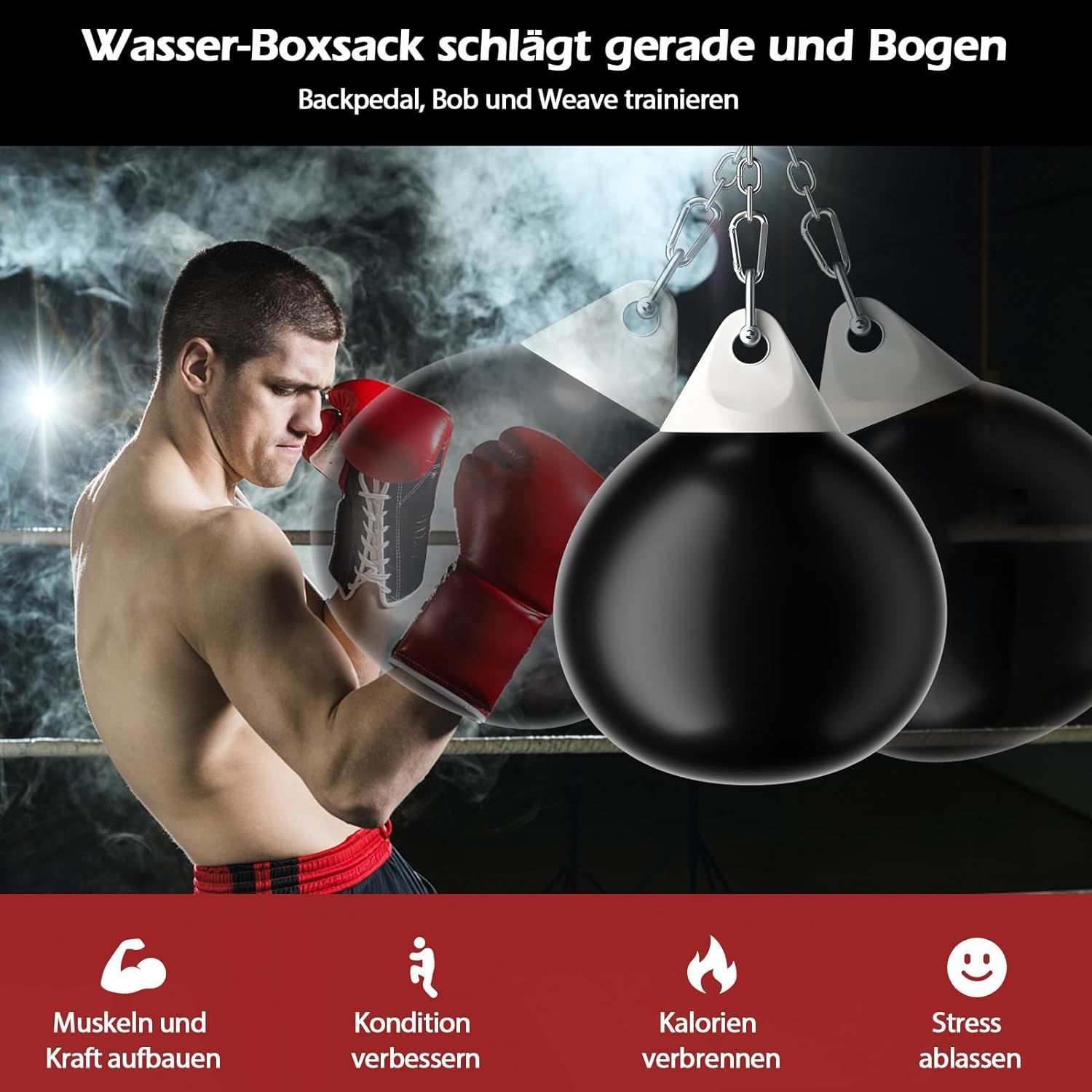 Wasserboxsack, 50 kg Boxing Punching Bag mit Verstellbarer Metallkette, Punchingsack