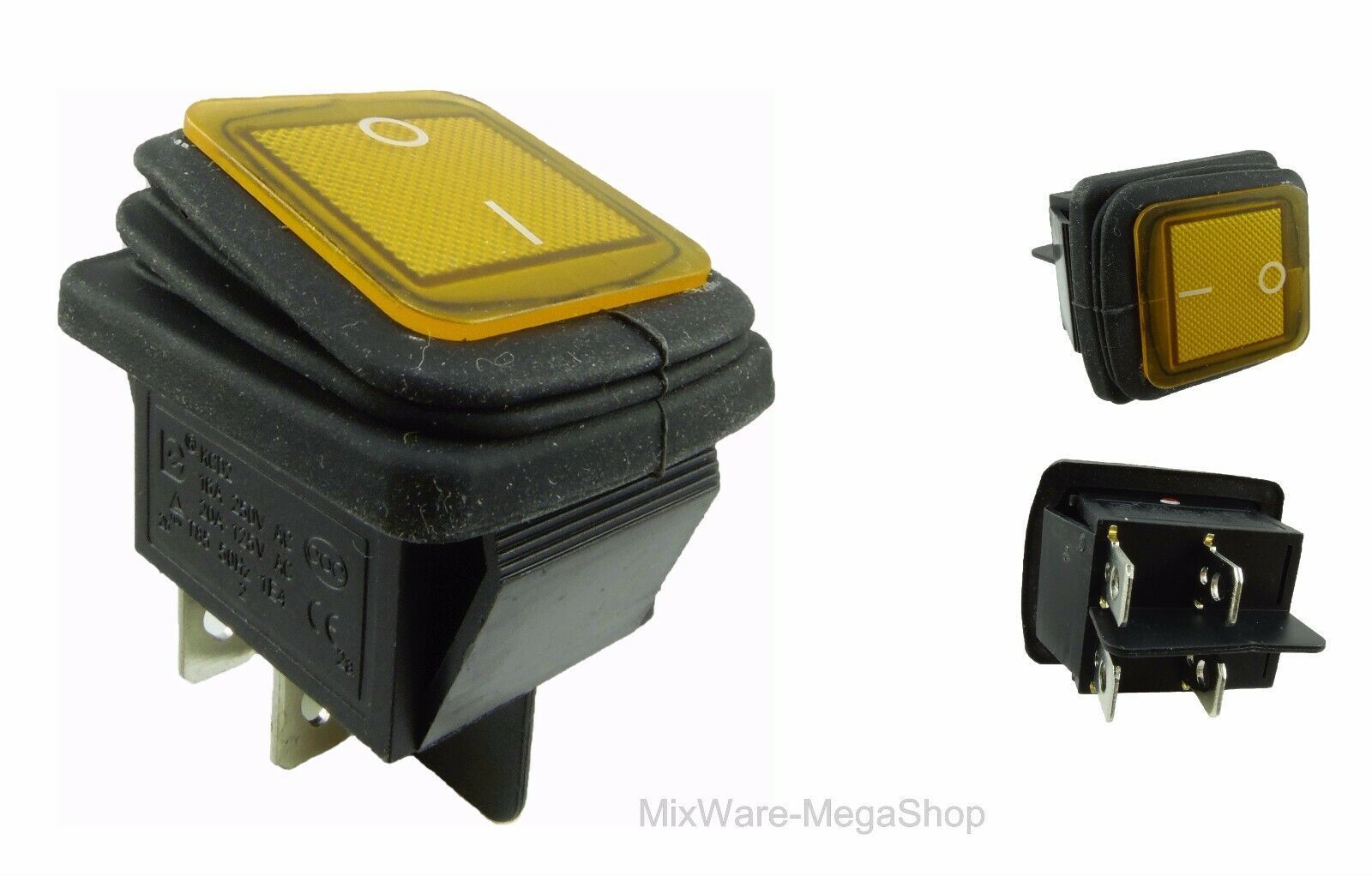 Wasserdichte Wippschalter 2-pol (4 Pin) EIN-AUS 250V 16A Gelb beleuchtet