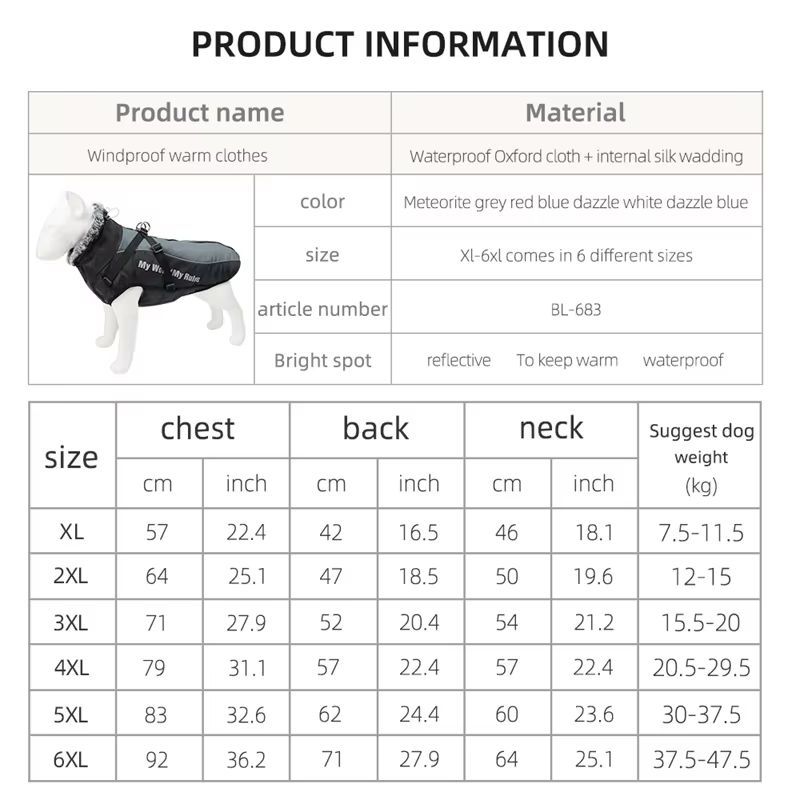 Big Dog Jacket Coat with Detachable Harness Warm Reflective