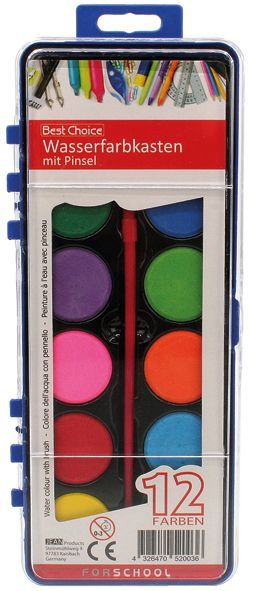 Wasserfarbkasten 12 XL Farben und Pinsel 21x8cm
