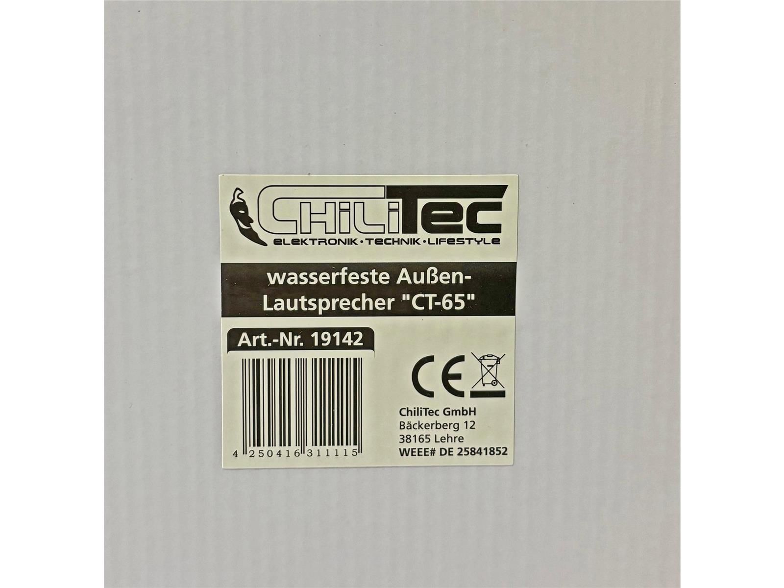 ChiliTec wasserfeste Außen-Lautsprecher "CT-65"8 Ohm, 6,5", 100W, 80Hz-20KHz, PAAR