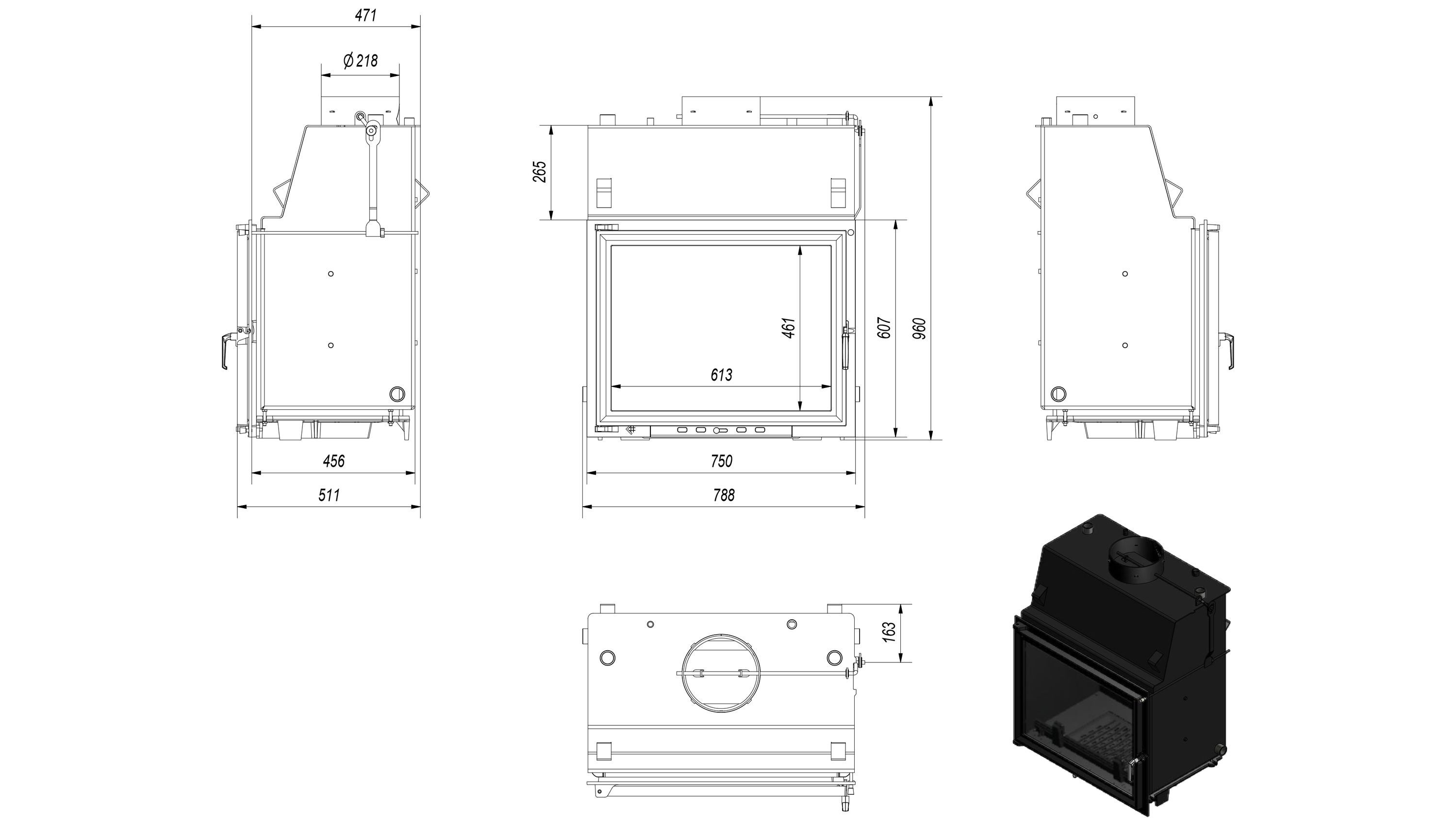 Wasserführender Kamineinsatz KRATKI AMELIA 15 kW Ø 220