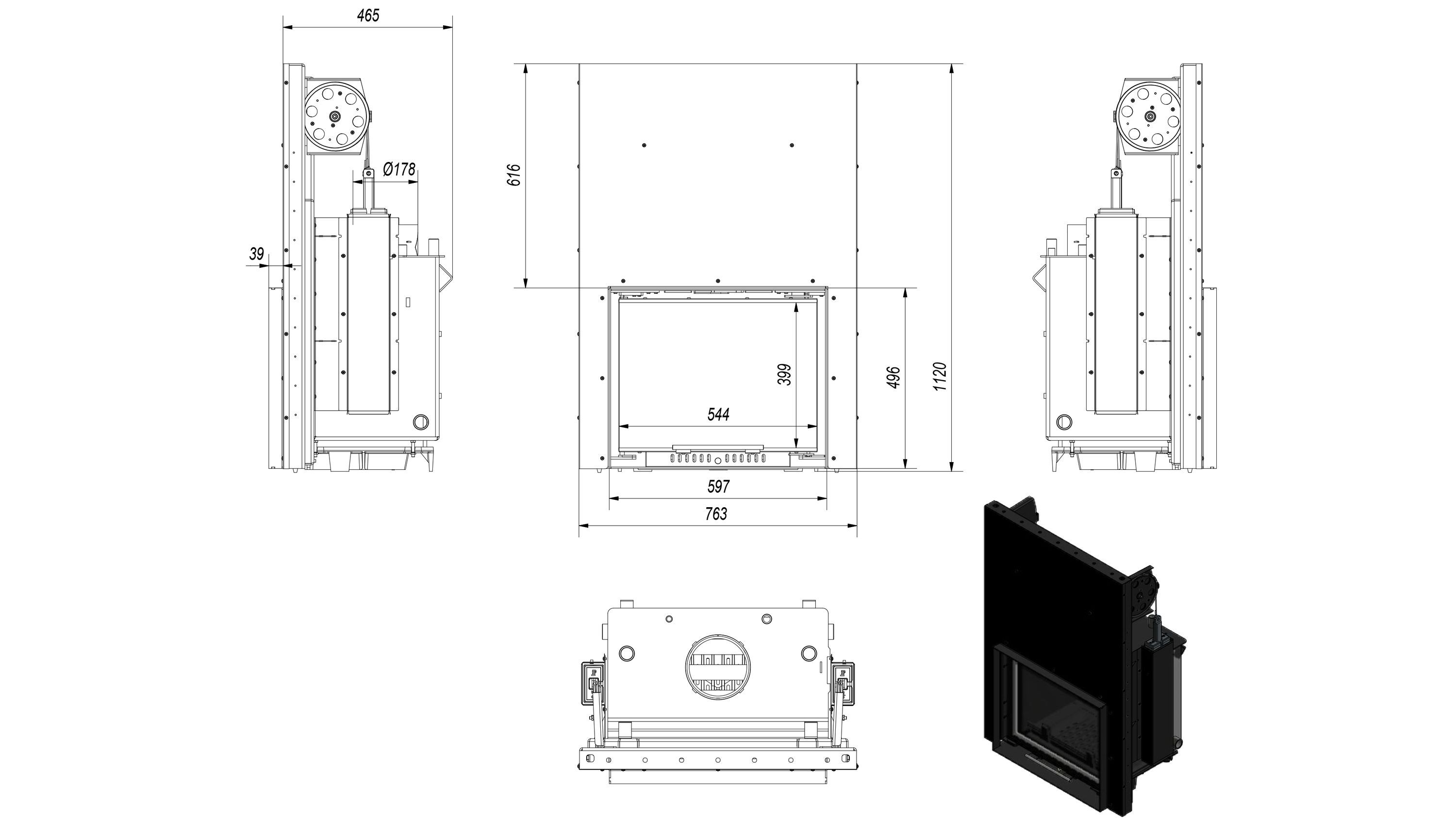 Wasserführender Kamineinsatz KRATKI MAJA 8 kW Ø 180 mit Schiebetür