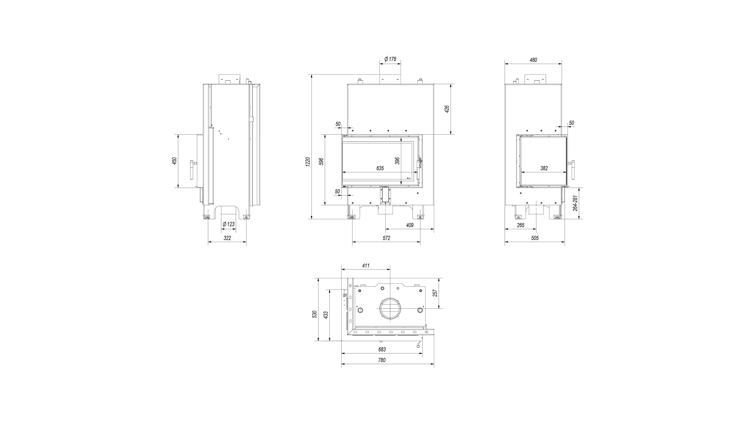 Wasserführender Kamineinsatz KRATKI MBM links 12 kW Ø 180