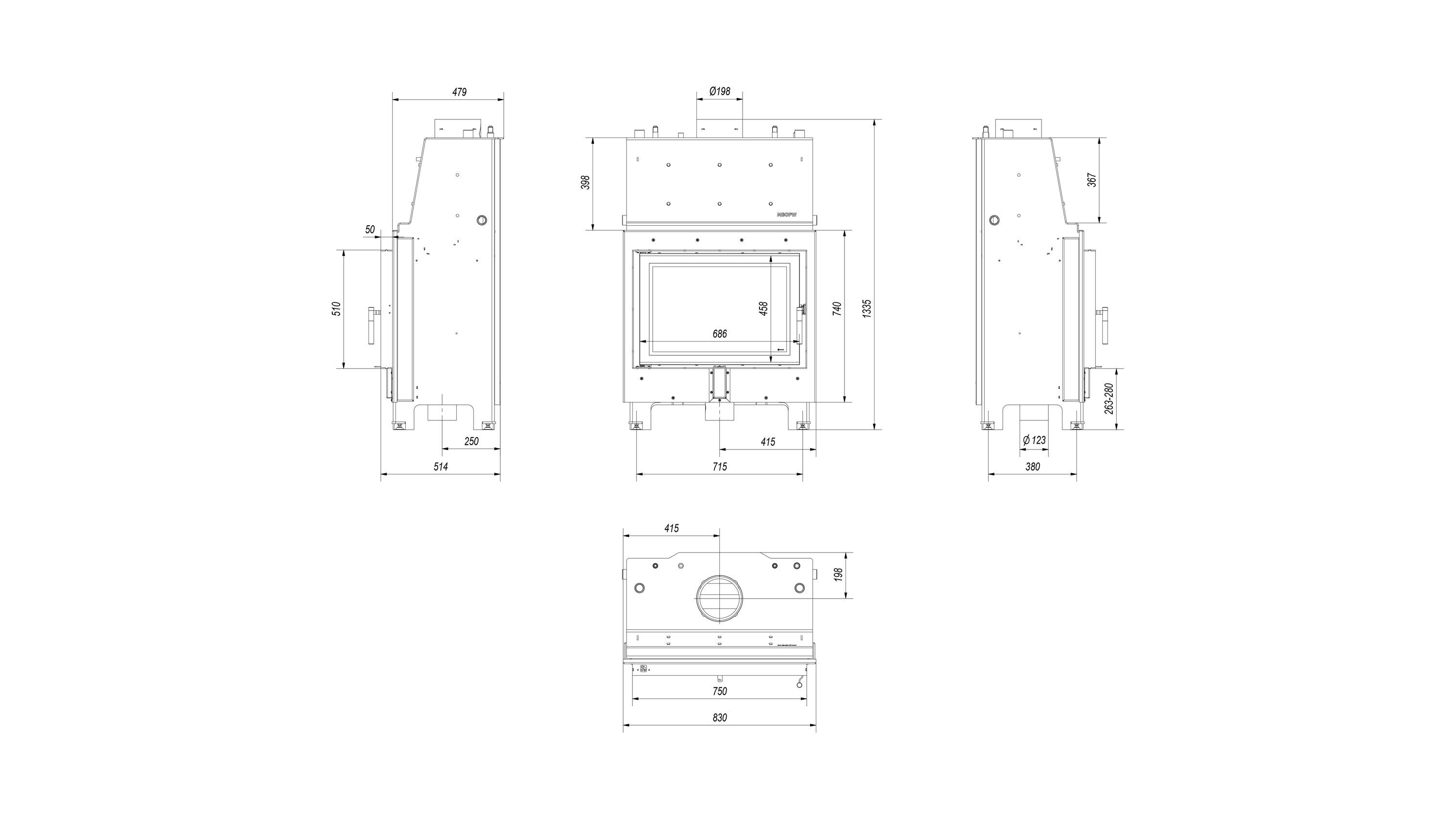 Wasserführender Kamineinsatz KRATKI MBO 15 kW Ø 200 schwarz Verkleidung