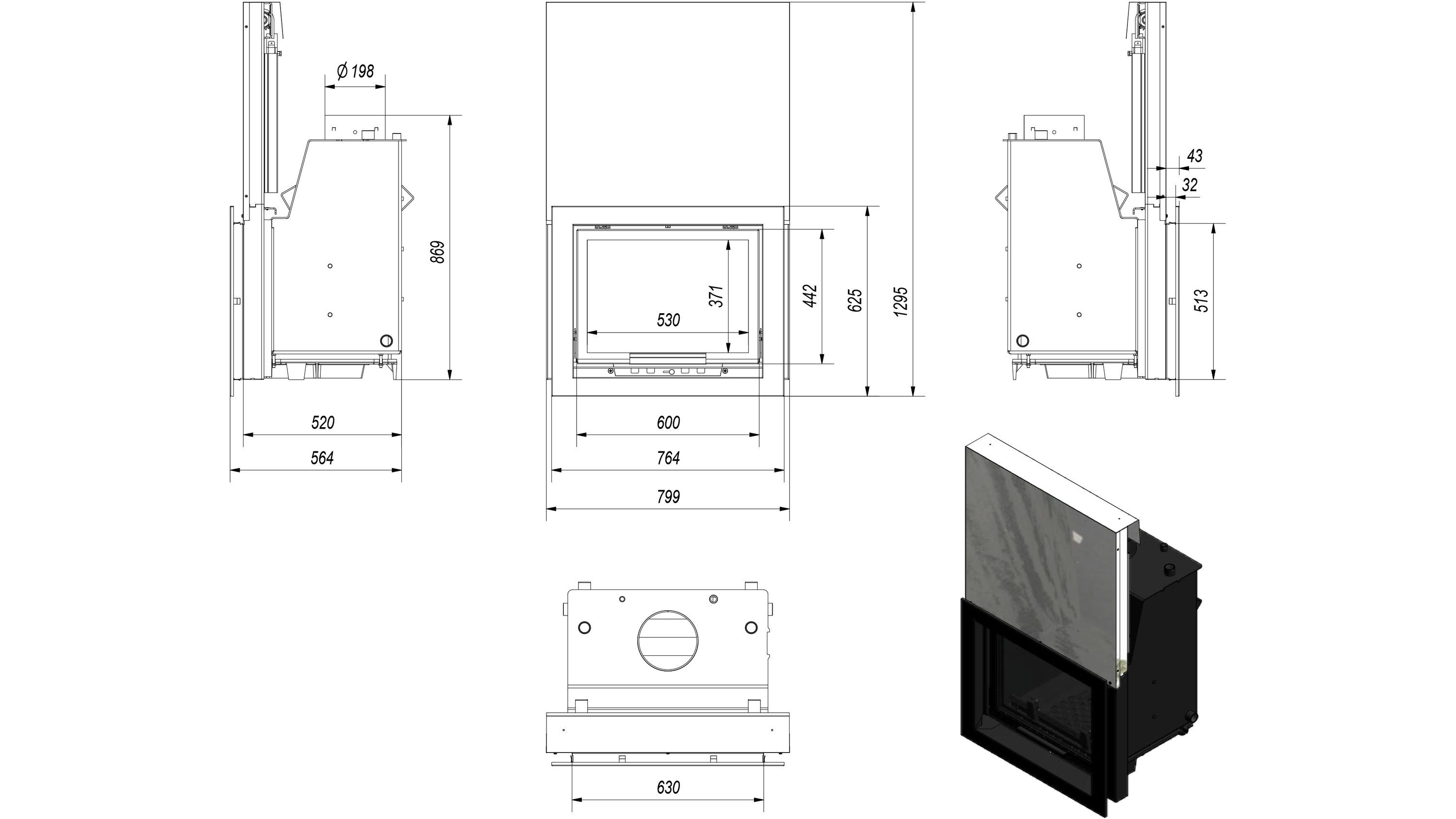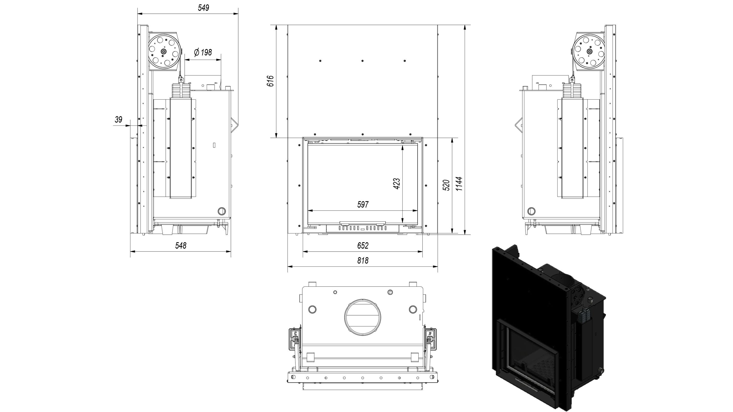 Wasserführender Kamineinsatz KRATKI ZUZIA 12 kW Ø 200 mit Schiebetür