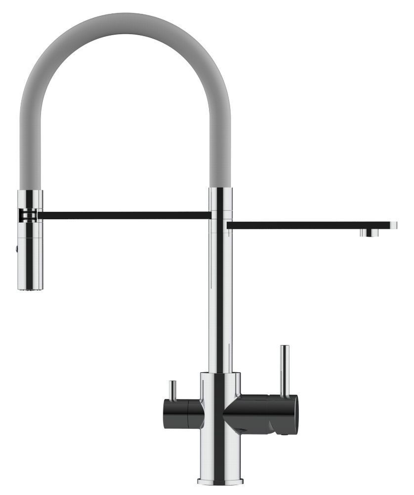 Wasserhahn 3 in 1 Armatur Osmose Anlage System Wasserfilter 3 Wege grau
