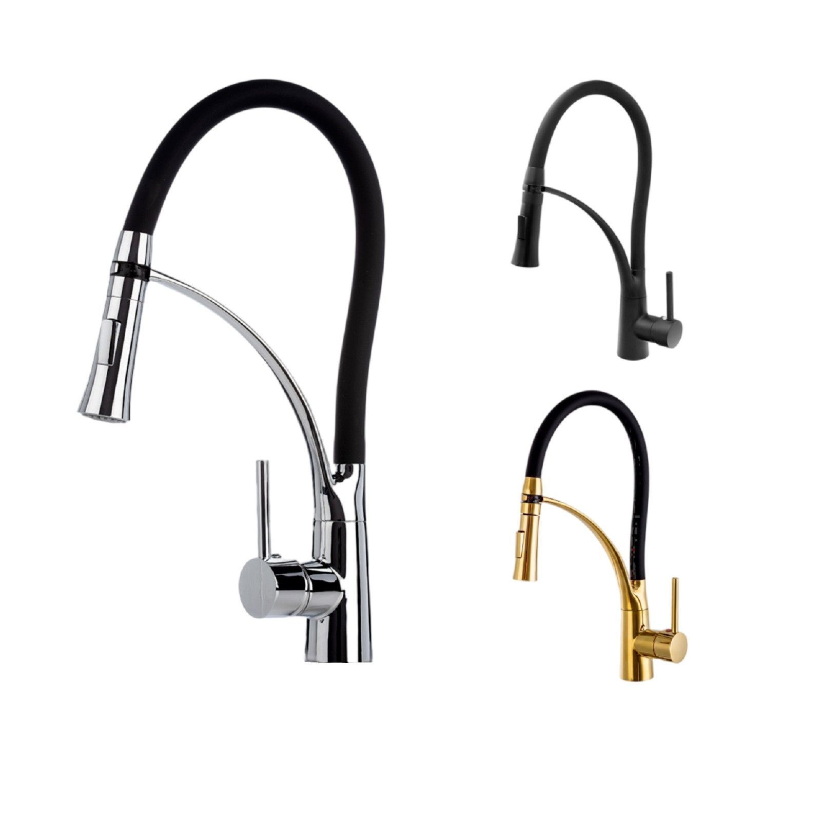 QLS Wasserhahn Küchenarmatur Mischbatterie Armatur Brause Flexibel Vene Schwarz 10721