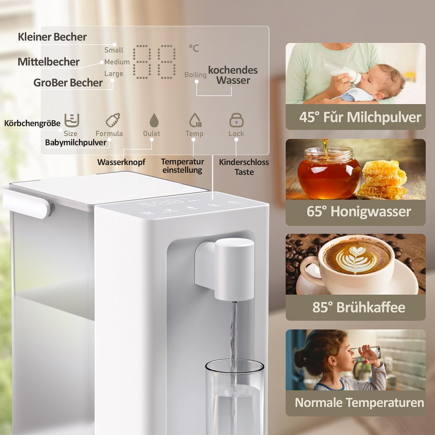 Wassertank abnehmbar, Touch-Bedienung, emory-Funktion