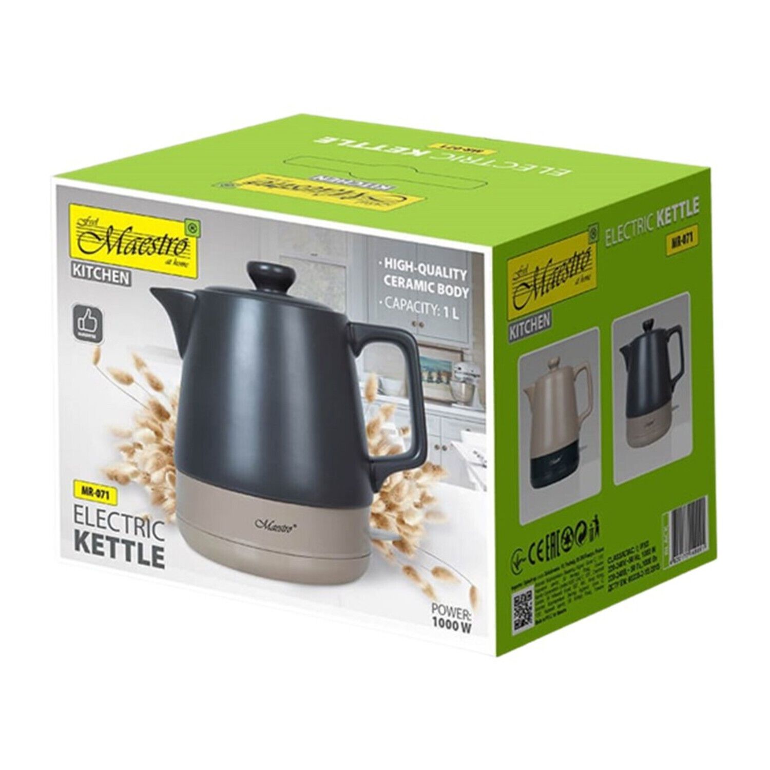 Maestro Wasserkocher Keramik-Wasserkocher Wasserkessel Teekanne 1 L 1000 W schwarz