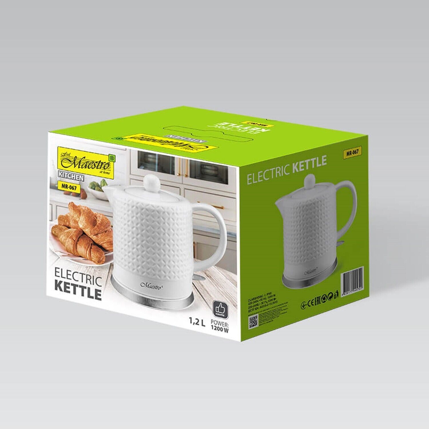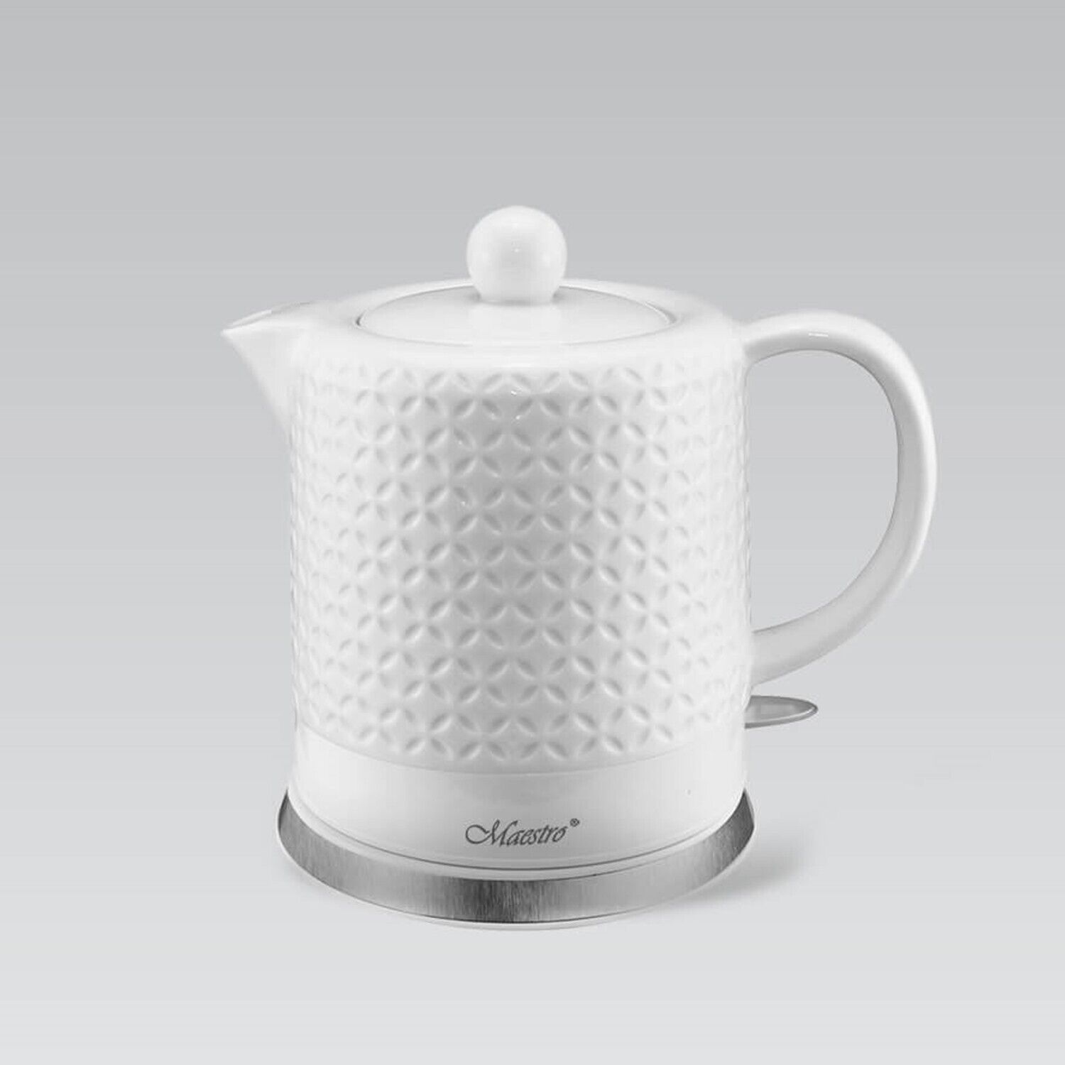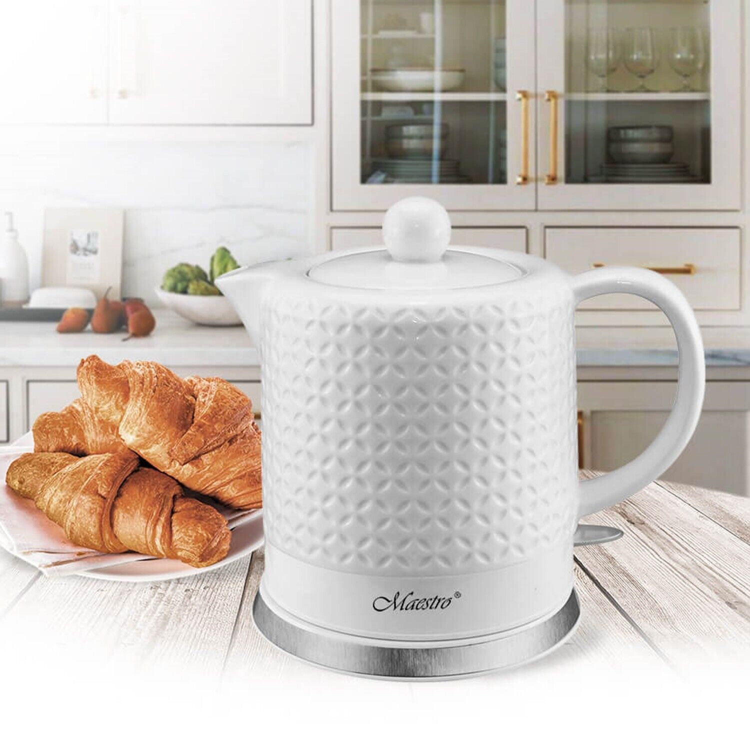 Maestro Wasserkocher Keramikkessel Kunststoffkessel Heizelement Überhitzungsschutz Weiß