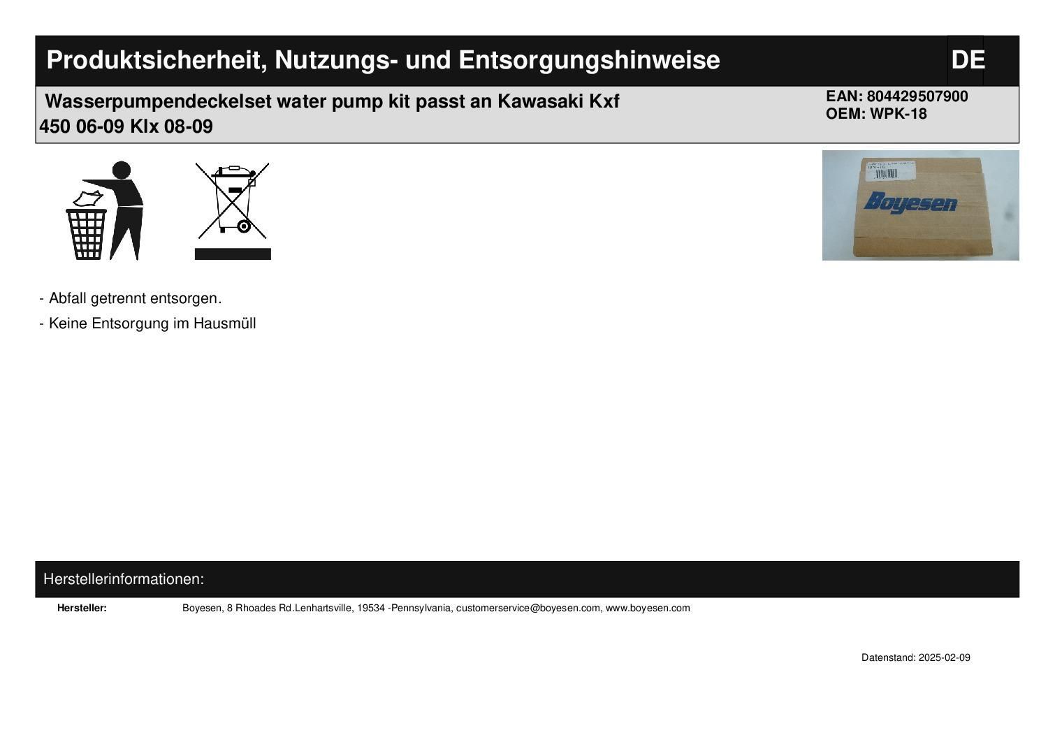 Wasserpumpendeckelset water pump kit passt an Kawasaki Kxf 450 06-09 Klx 08-09