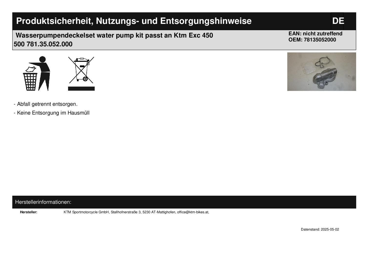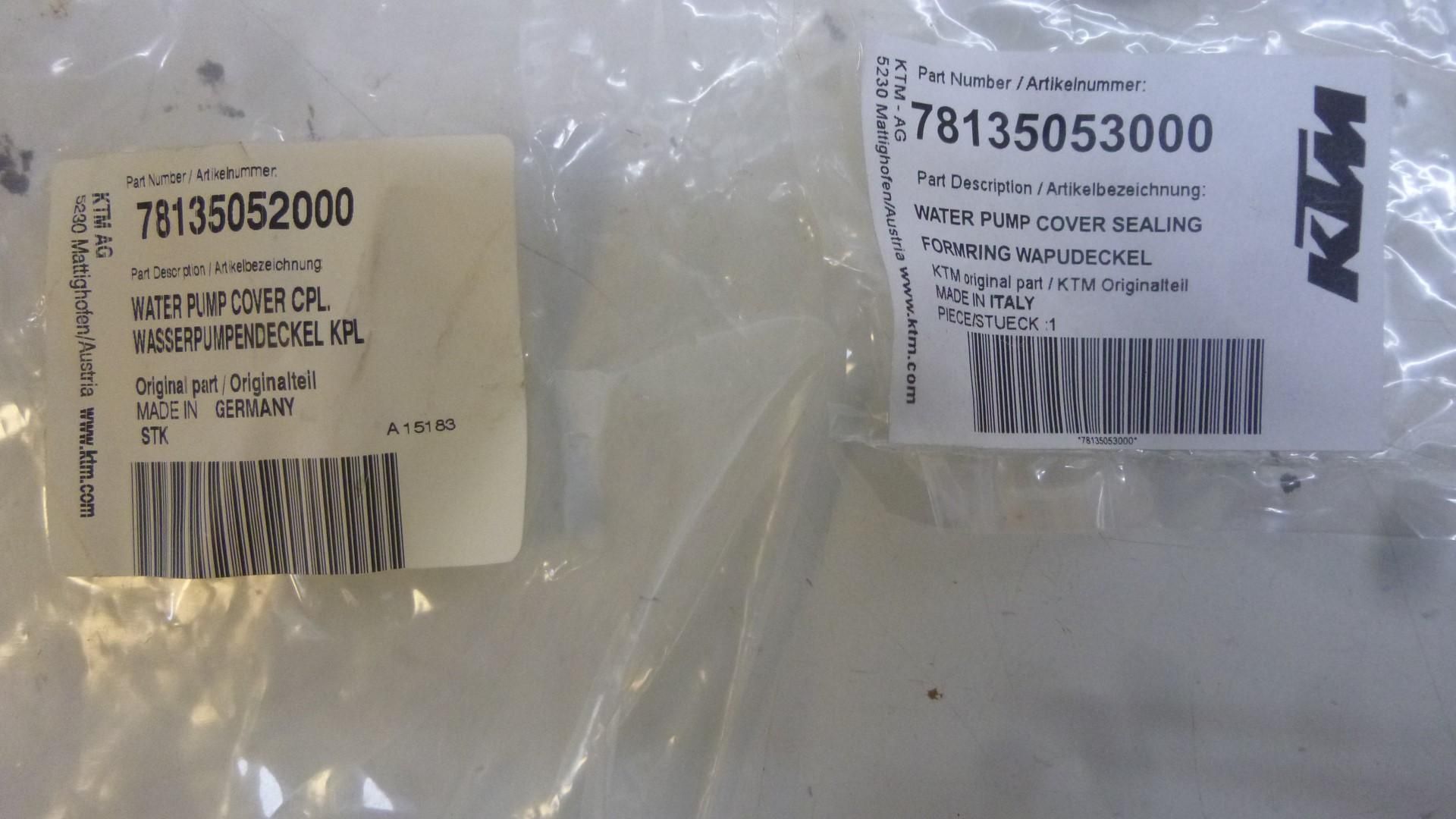 Wasserpumpendeckelset water pump kit passt an Ktm Exc 450 500 781.35.052.000 In dieser Auktion gibt folgenden Artikel zu kaufen: Wasserpumpendeckelset (siehe Foto) Modell: passend für Ktm EXC 450 Bj.: 12 - 15 EXC 500 Bj.: 12 - 15 Lieferumfang: siehe Foto Artikelzustand: neu aus Geschäftsauflösung, m