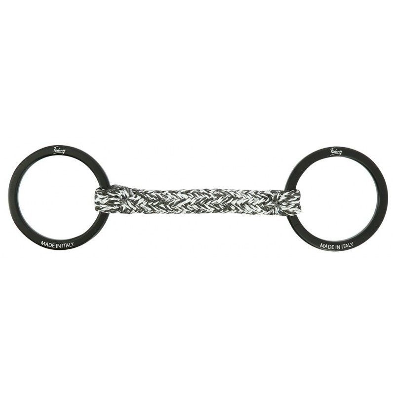 Das Gebiss ist aus einer patentierten, nicht zerfransenden verdrillten Faser namens Jumpe gefertigt und mit zwei 7mm dicken Ringen aus eloxiertem Aluminium versehen (3 glänzende Farben verfügbar: schwarz, Aluminium oder Roségold). Die spezielle Aluminiumlegierung ist leicht, robust und rostfrei und