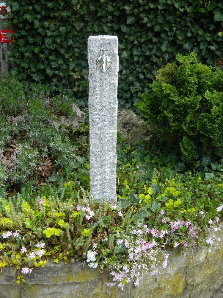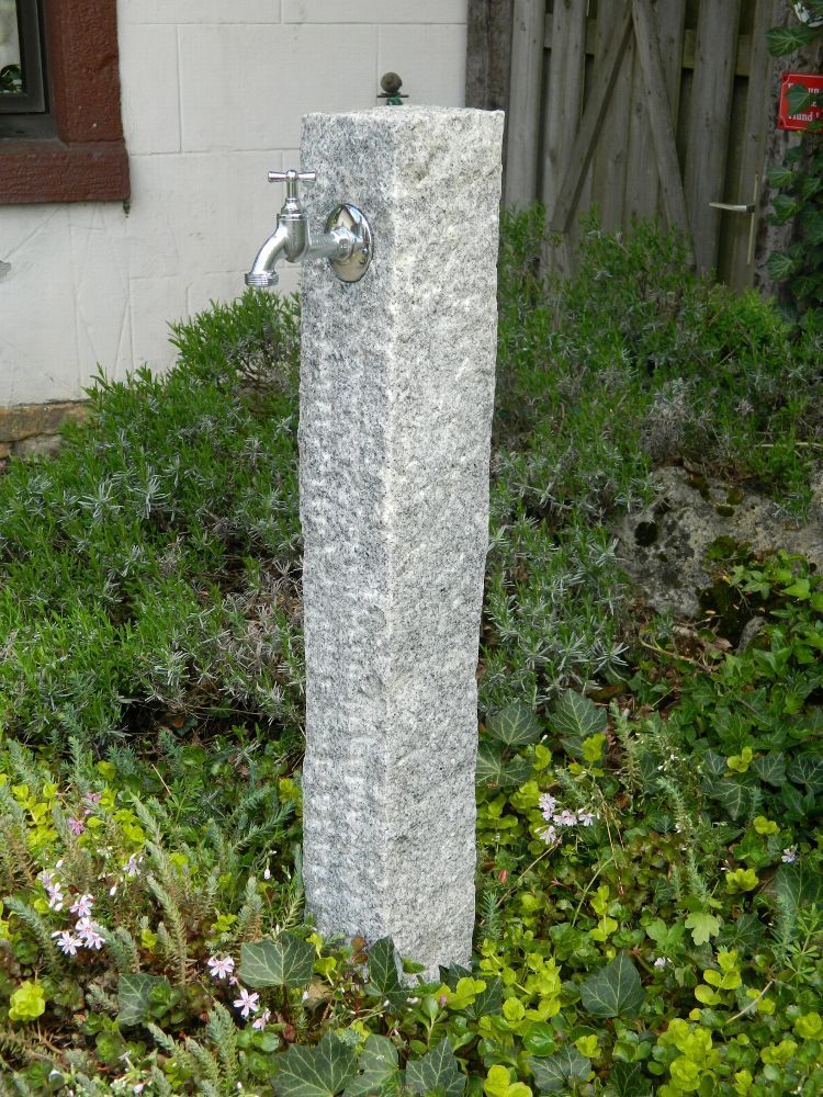 Wasserzapfsäule aus Granit, Wasserzapfstelle, Außenwasserhahn, echter Naturstein