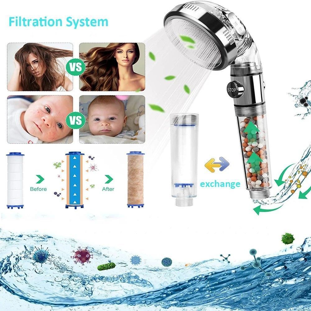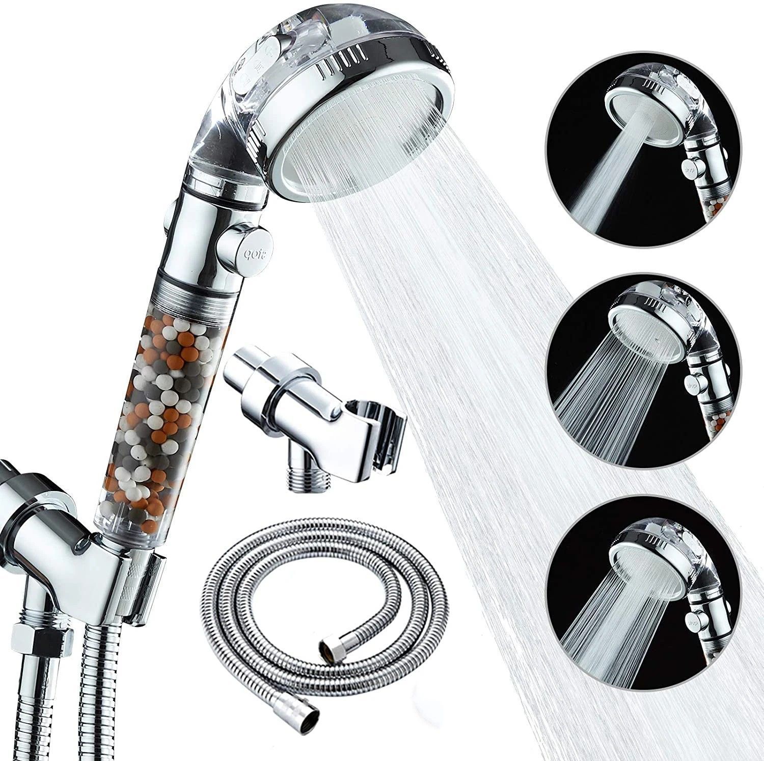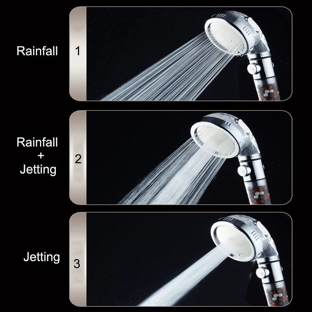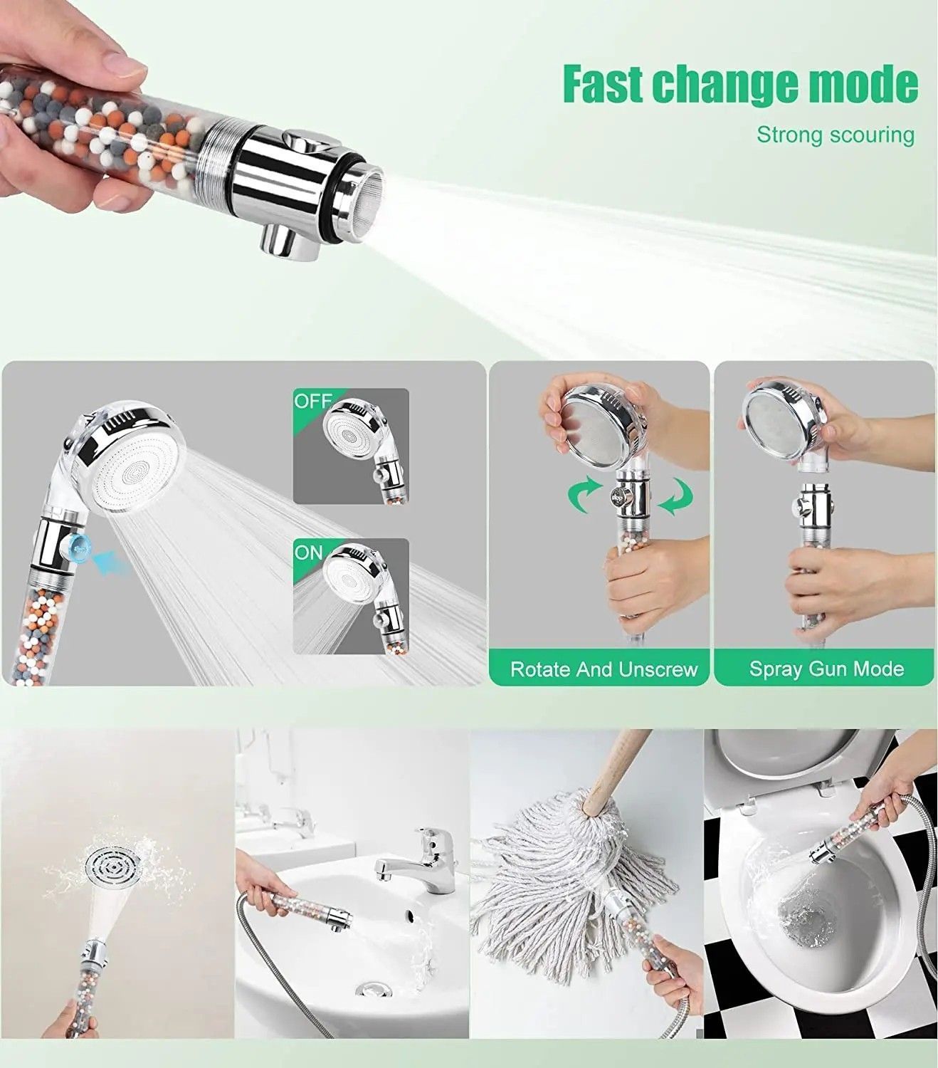 Water-saving shower head with mineral stones, shower head with 3 water jet settings,