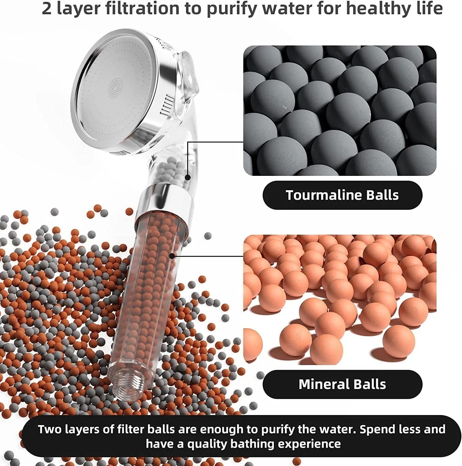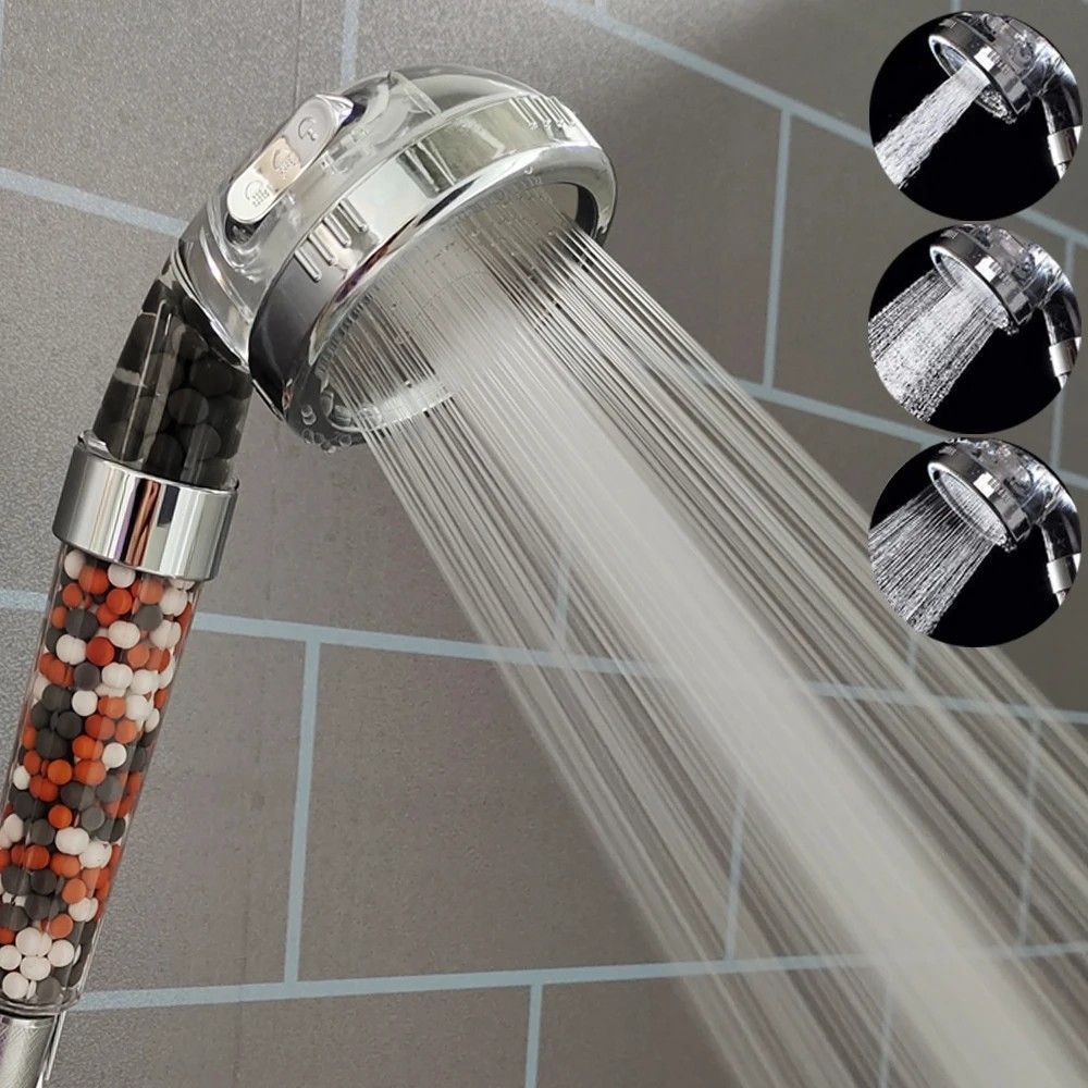 Water-saving shower head with mineral stones, shower head with 3 water jet settings,
