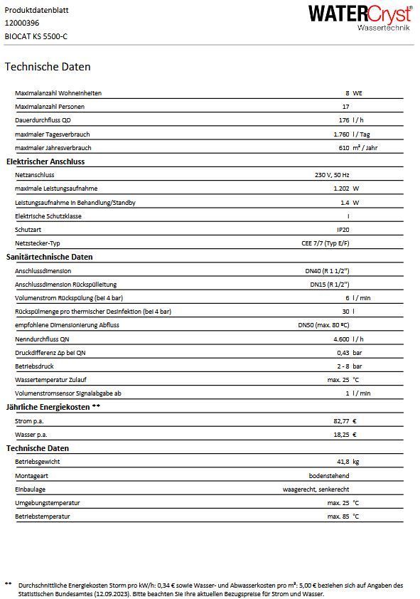 Watercryst BIOCAT KS 5500-C Kalkschutzanlage Katalysator Technologie 12000396