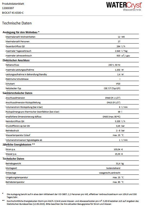 Watercryst BIOCAT KS 6500-C Kalkschutzanlage Katalysator Technologie 12000397