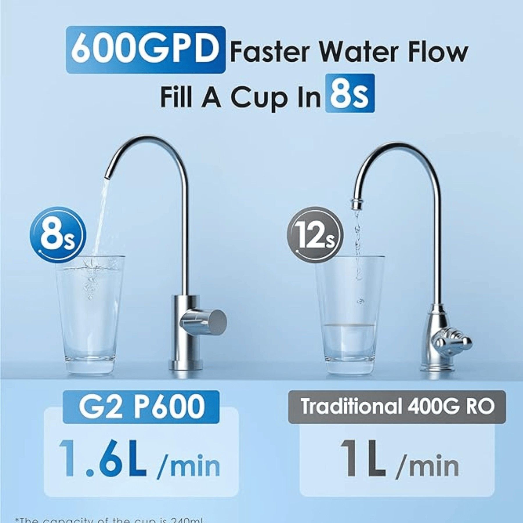 Waterdrop G2P600 Umkehrosmose-Wasserfiltersystem, 8000 Liter, 2:1 Reinwasser, Tanklos