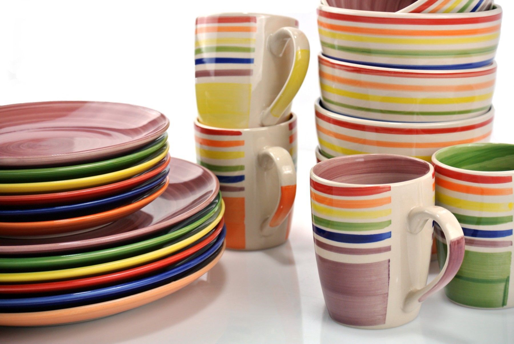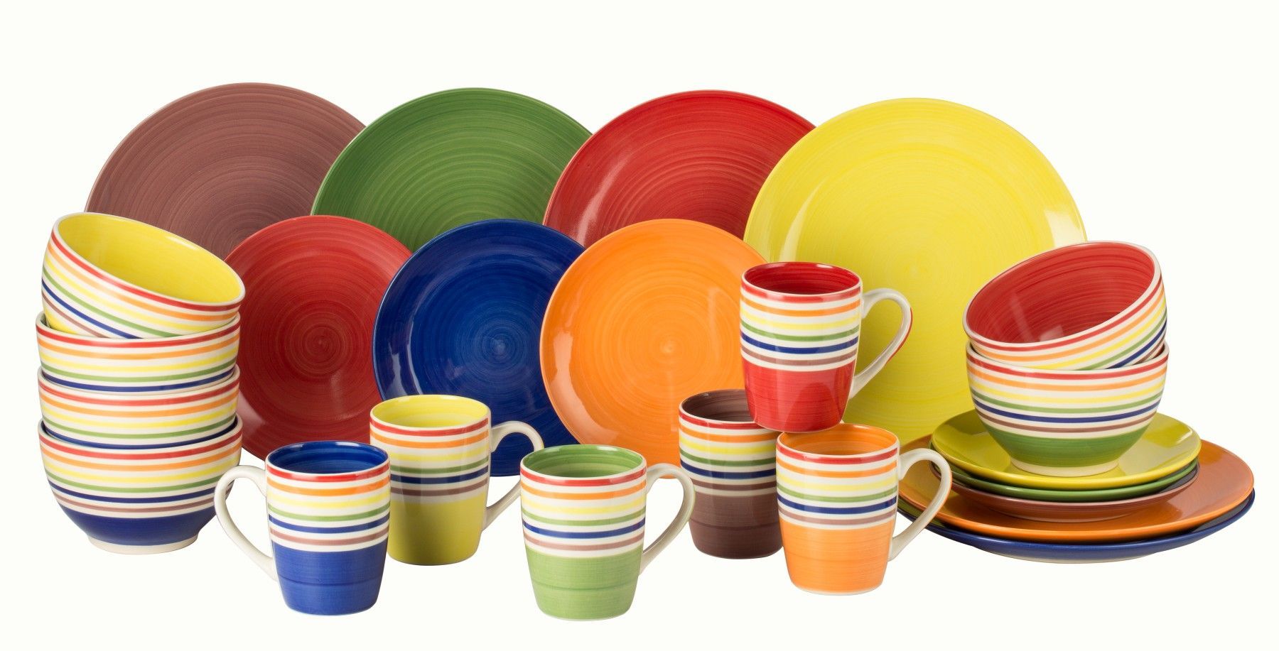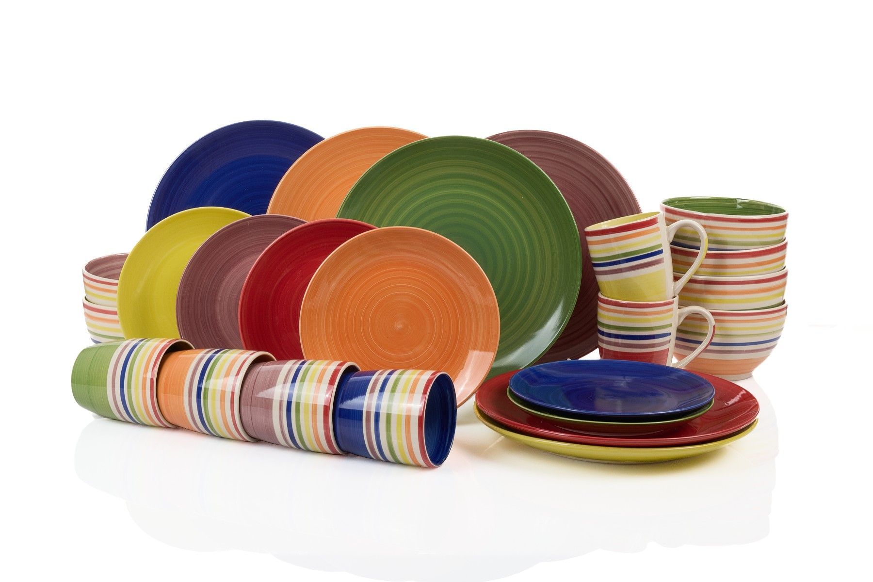 Waterside UK- COLOUR Stripes Kombigeschirr 24teilig für 6 Personen Feinsteinzeug rund