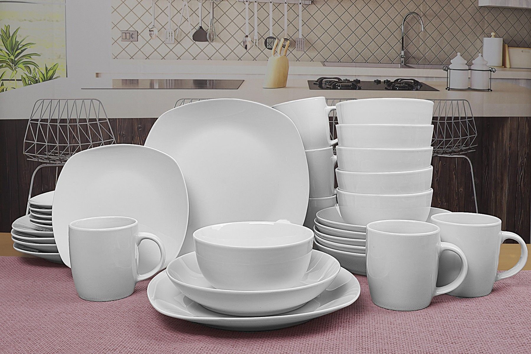 Waterside UK- EVERY DAY Kombigeschirr 30teilig für 6 Personen Porzellan rund & eckig