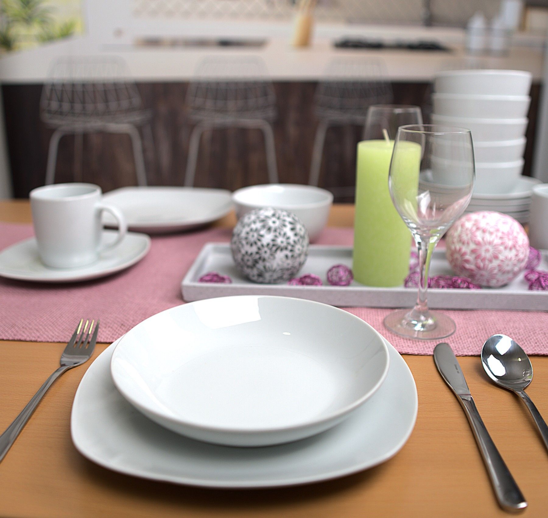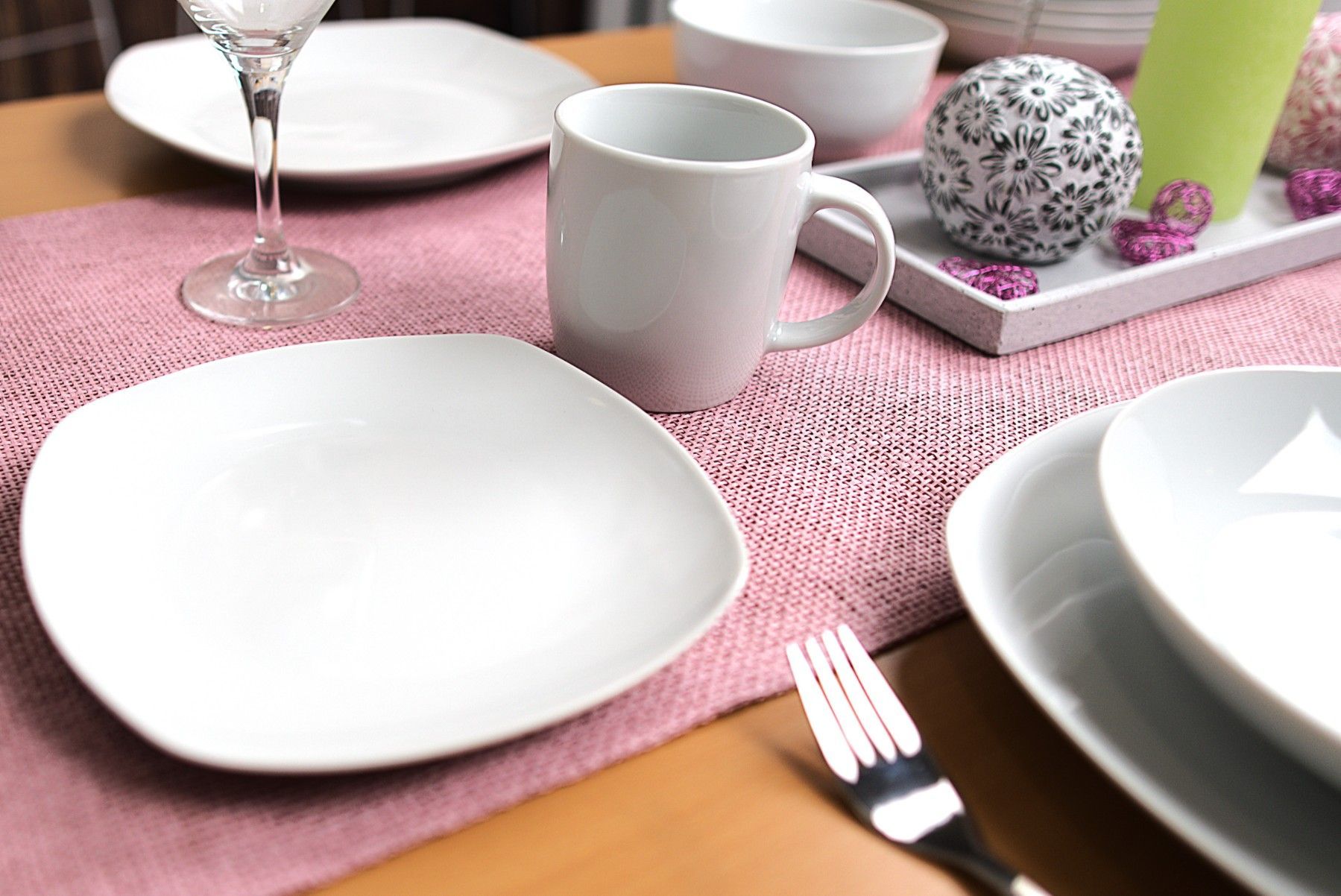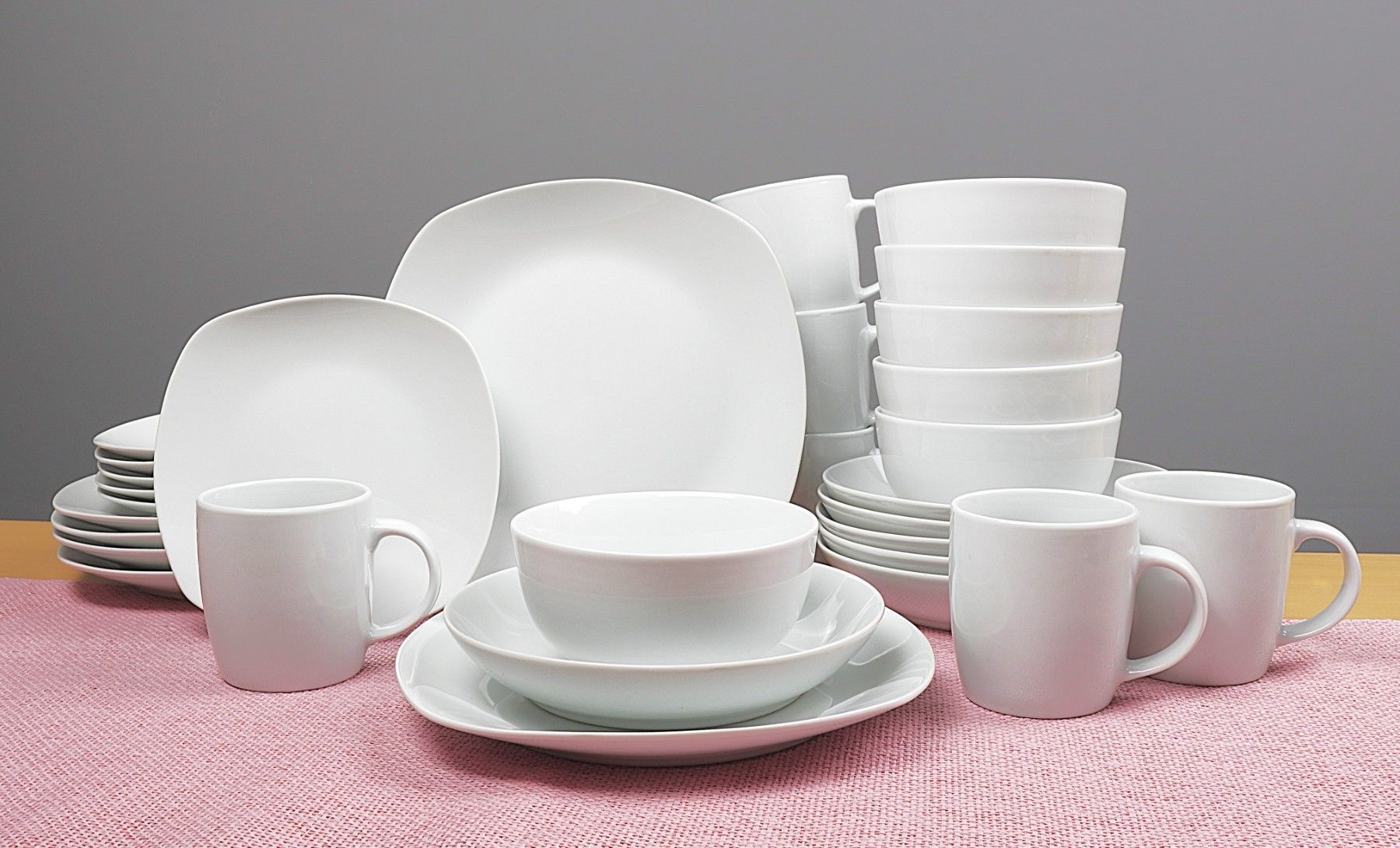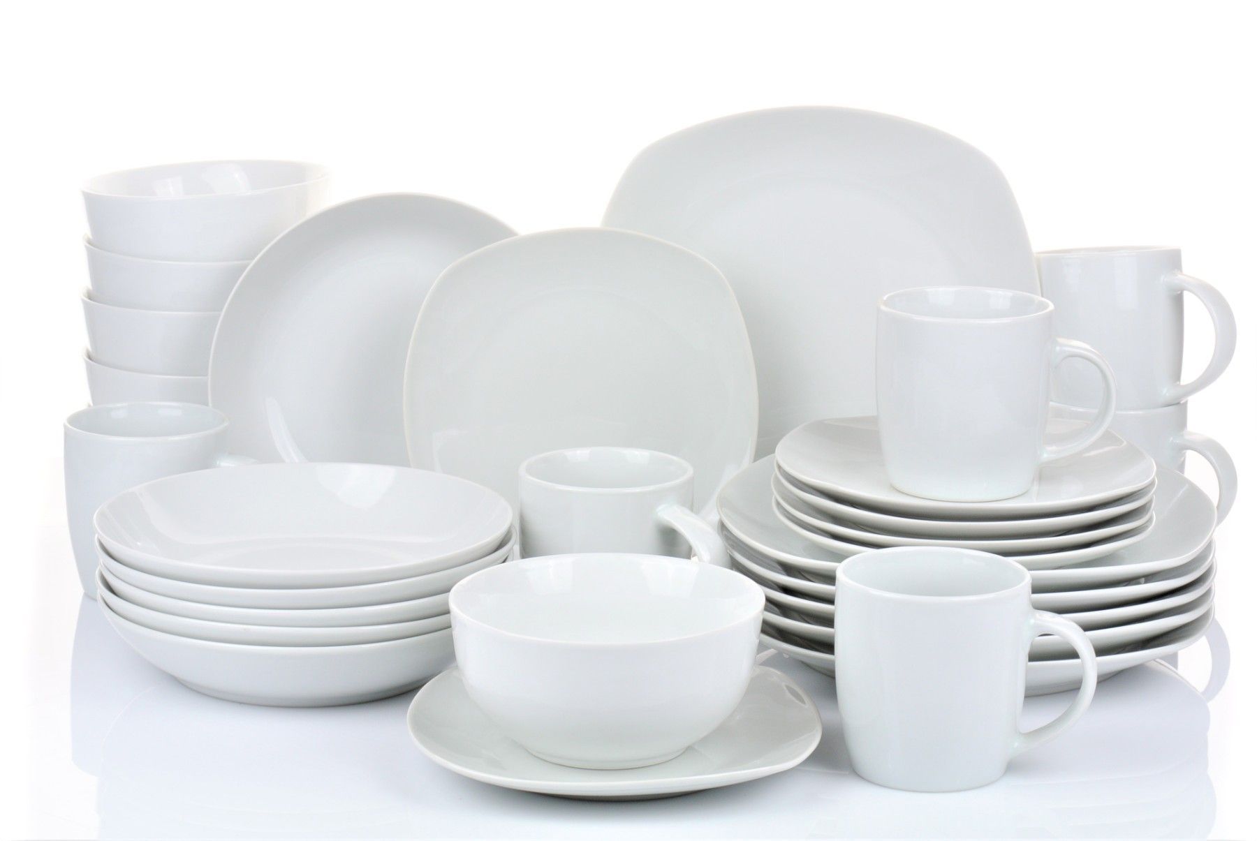 modernes Porzellanset in einem Mix aus Rund & Eckig auf klassischem Weiß