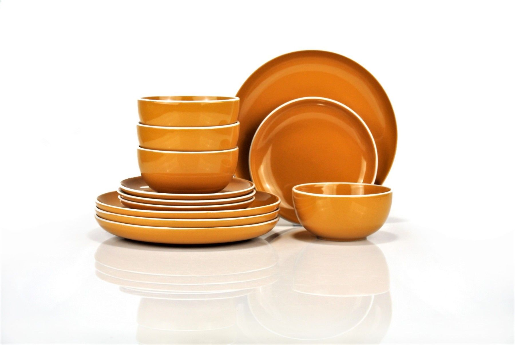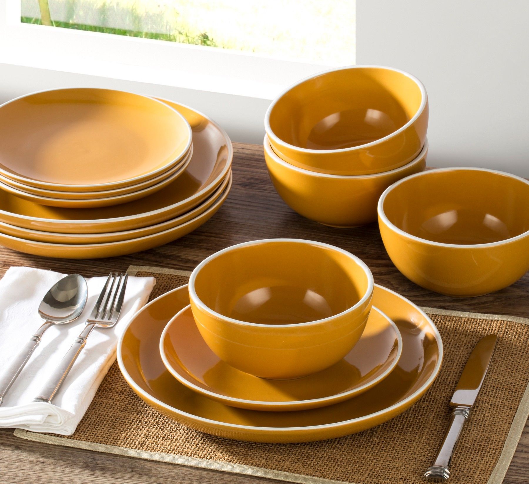 Waterside UK- HALO GELB Tafelgeschirr 12teilig für 4 Personen Feinsteinzeug rund