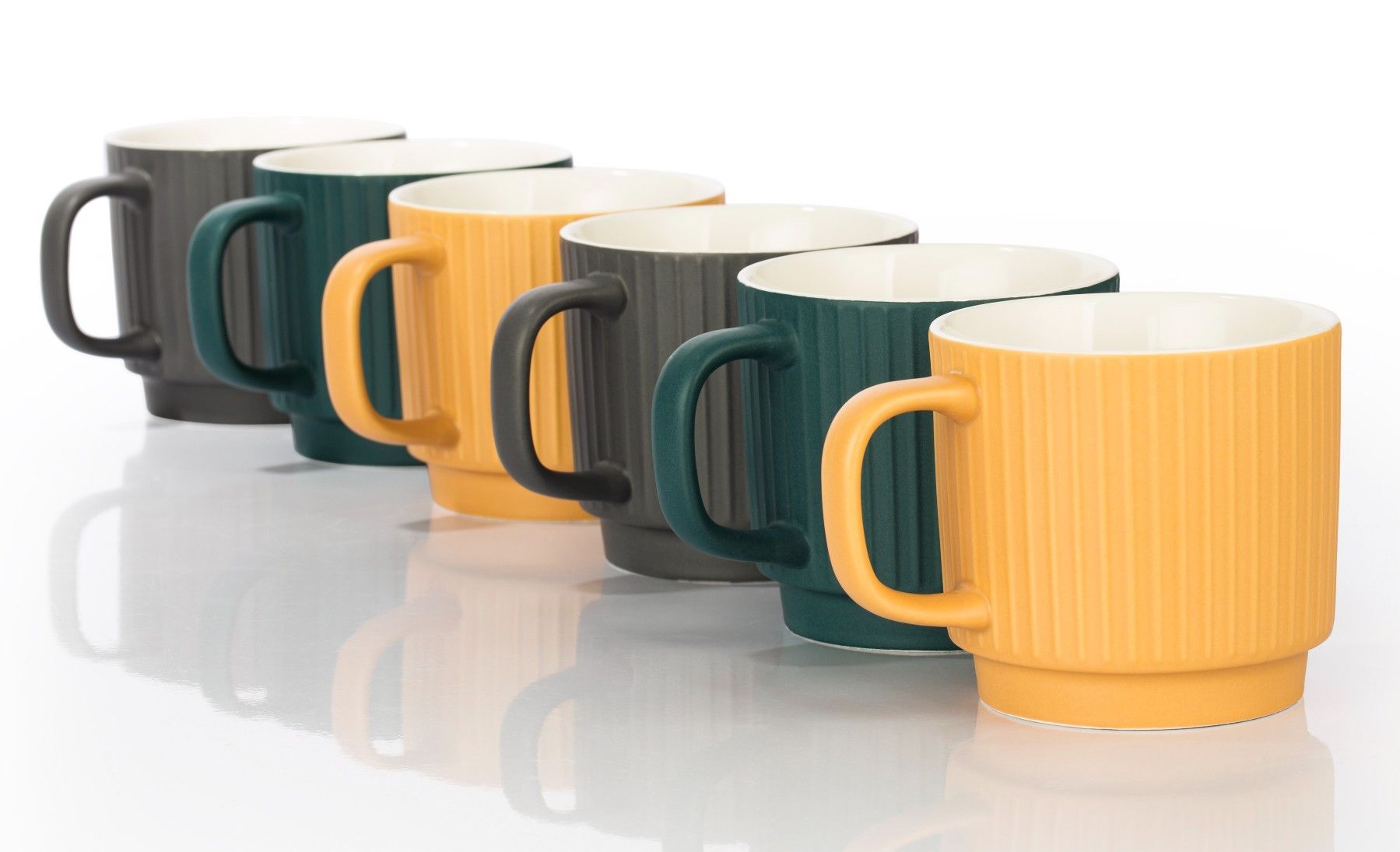 großer, cooler u. stapelbarer Henkelbecher in angesagten Farben, Reliefporzellan