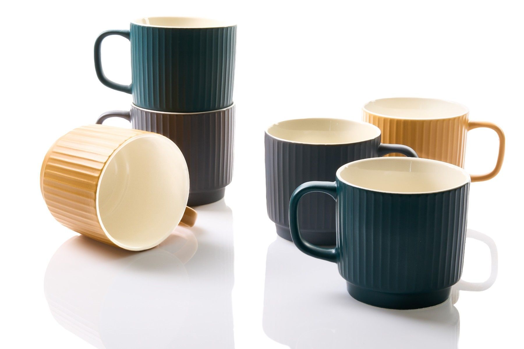 Waterside UK- NATURE Becherset 6teilig 380ml Porzellan 3 Farben gemixt