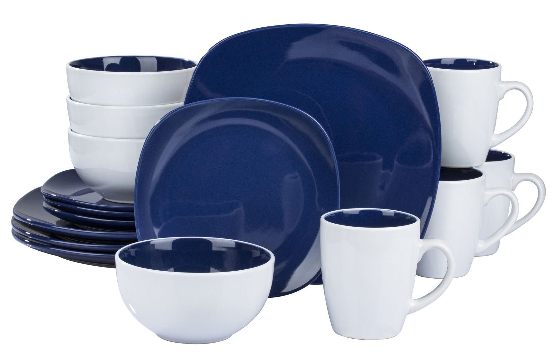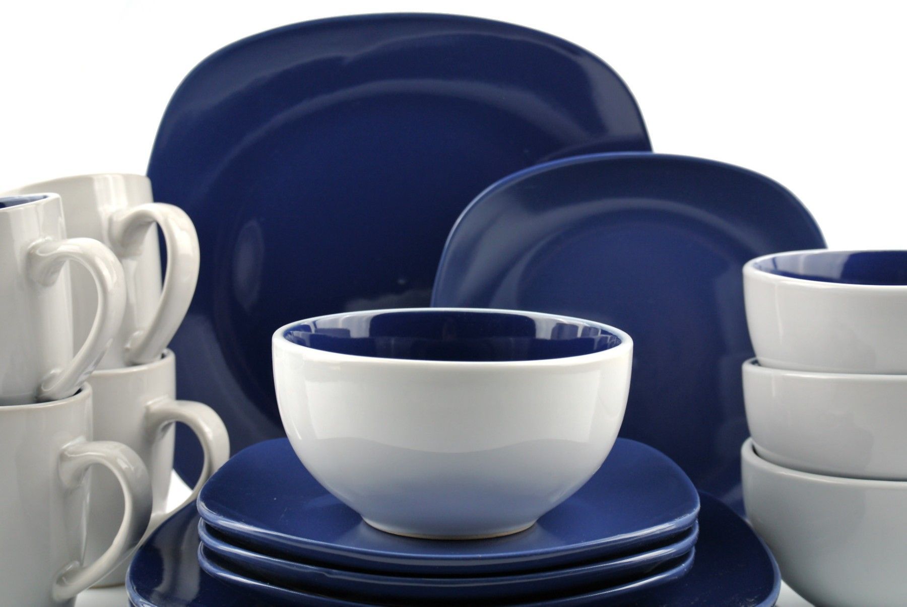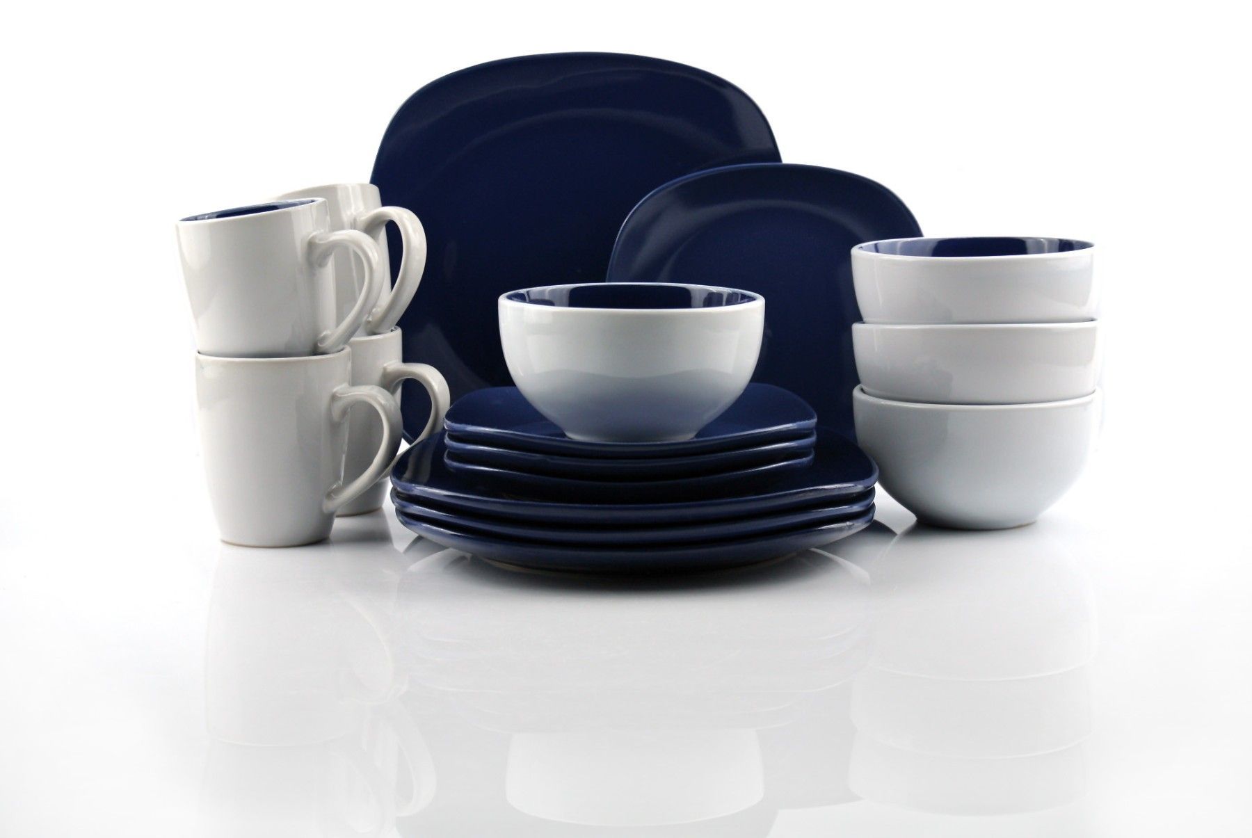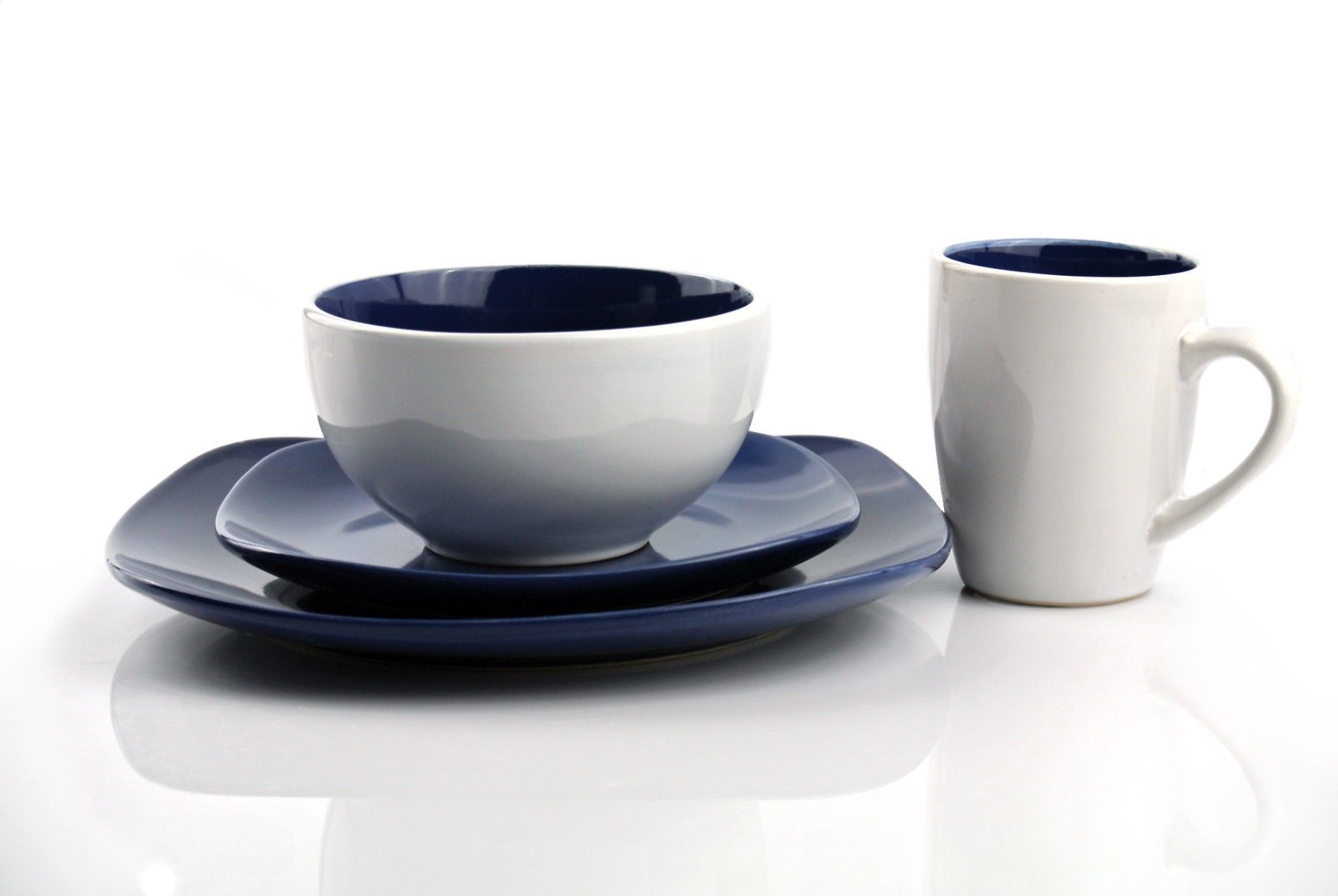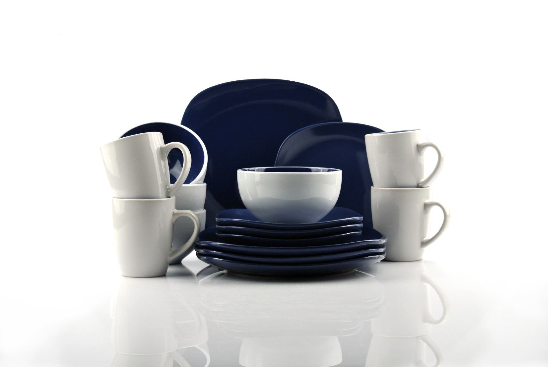 Waterside UK- NOVA Square BLAU Kombigeschirr 16teilig für 4 Personen Steinzeug