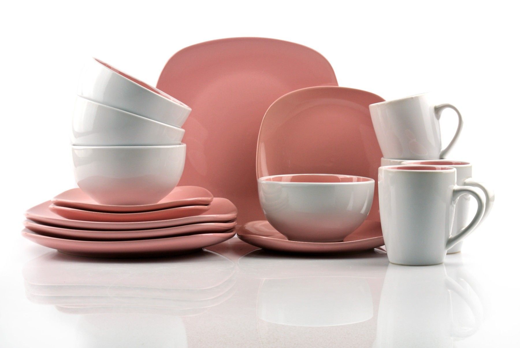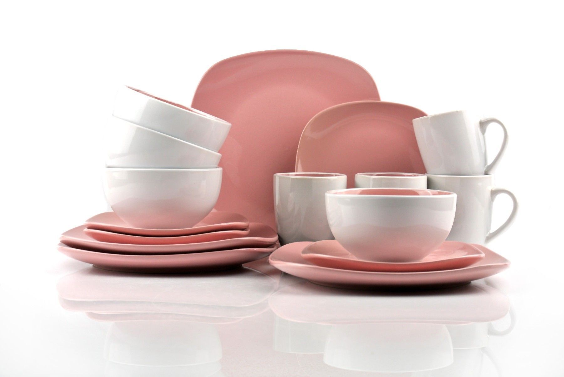 Waterside UK- NOVA Square ROSA Kombigeschirr 16teilig für 4 Personen Steinzeug